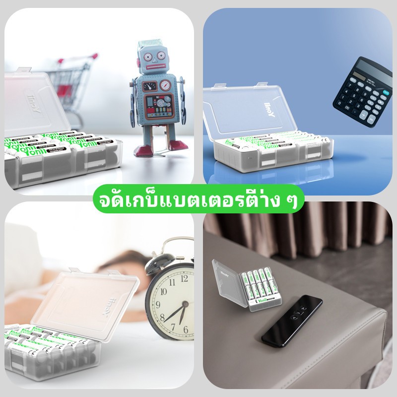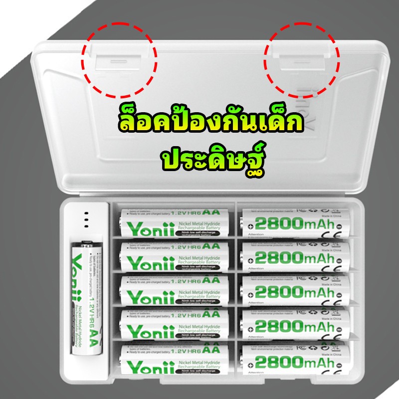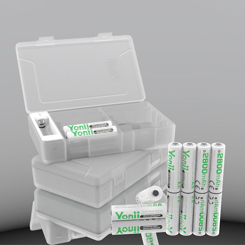 กล่องเก็บแบตเตอรี่ Yonii S28 สําหรับแบตเตอรี่ AA/AAA, สามารถทดสอบพลังงานที่เหลือได้, เปลือกโปร่งใส, รุ่นสีขาว (ไม่รวมแบตเตอรี่)