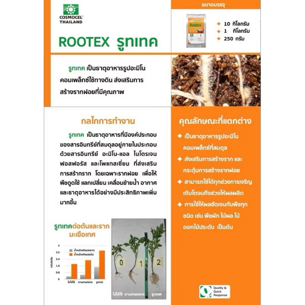 รูทเทค Rootex☘️ขนาด 1000 กรัม🍀สร้างราก เร่งรากฝอย สูตรอะมิโนคีเลท 6-46-5+อะมิโนแอซิด18.5%