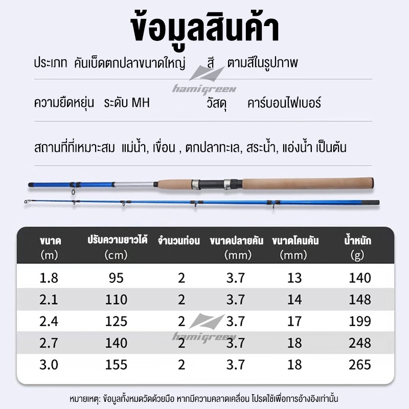 Hamigreen คันหน้าดิน 7-10 ฟุต คันเบ็ดอาชิโน่ MH คันสปินนิ่ง คันเบ็ดตกปลา คันไฟเบอร์ผสมกราไฟต์ สปิน คันเบ็ดตกปลา