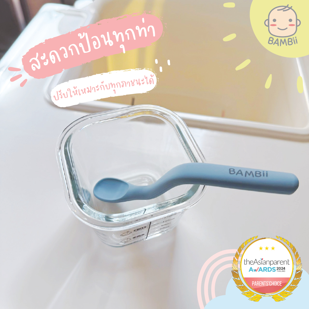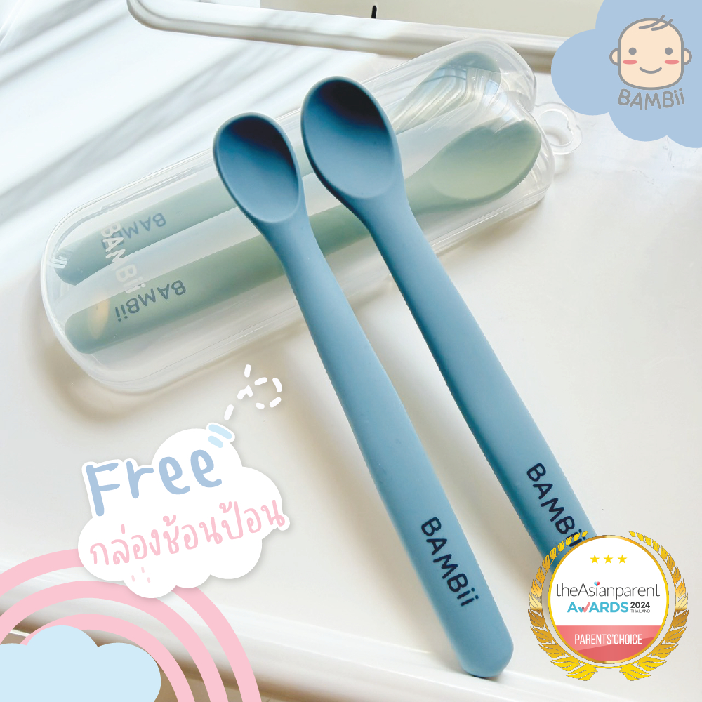 BAMBii ช้อนป้อนซิลิโคน ดัดโค้งงอได้ Platinum food grade silicone แถมฟรี กล่องพกพา