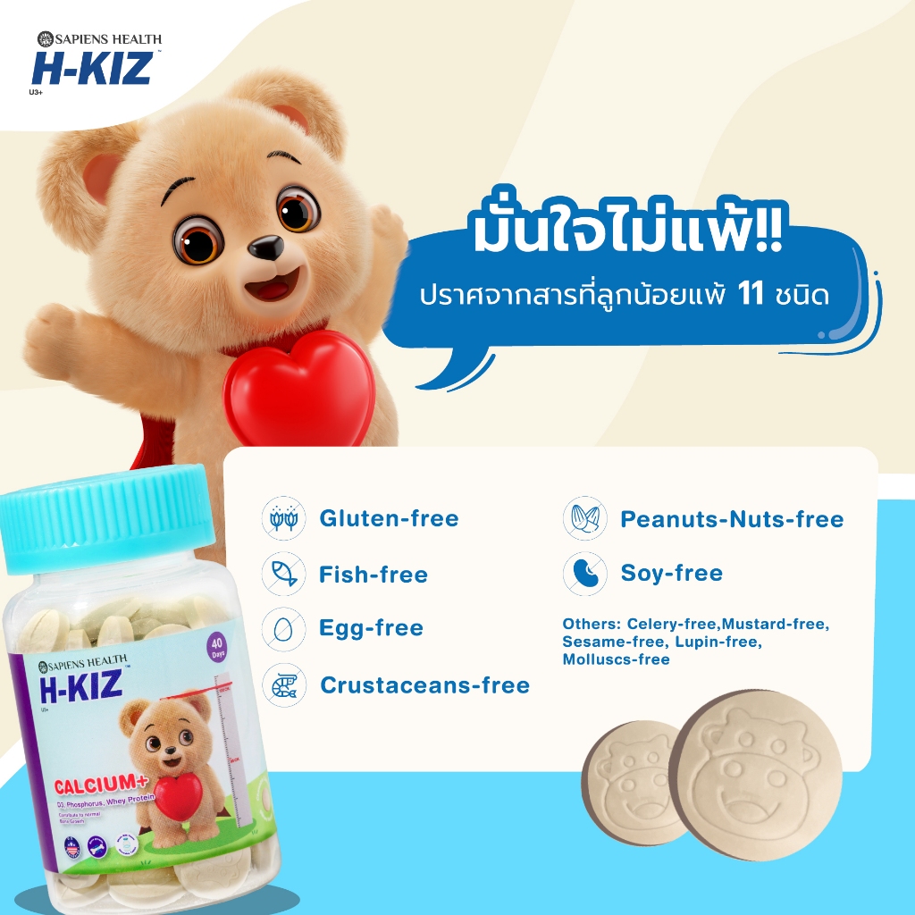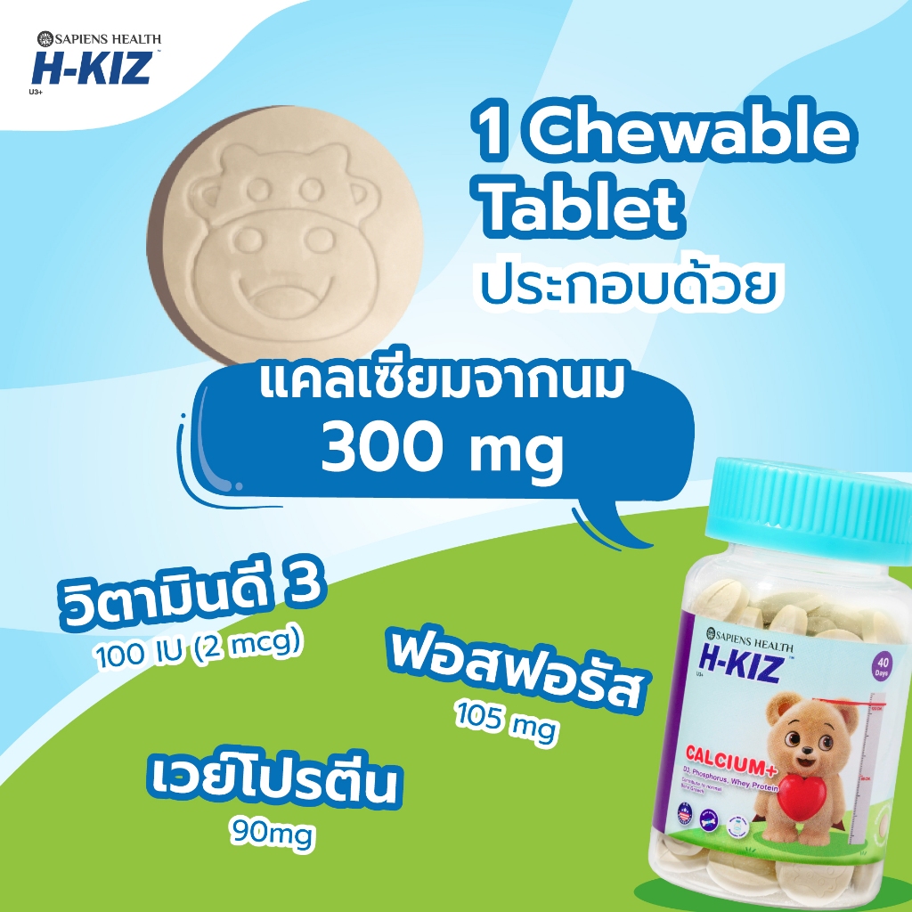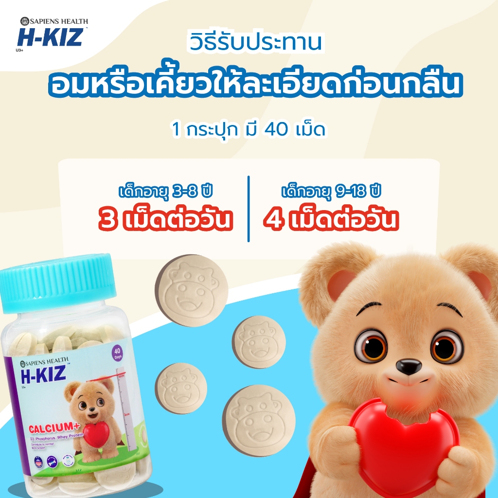 H-KIZ Calcium+D3 x2 แคลเซียมเข้มข้นพร้อมโปรตีนและฟอสฟอรัส กระดูกแข็งแรง สูงได้อีก