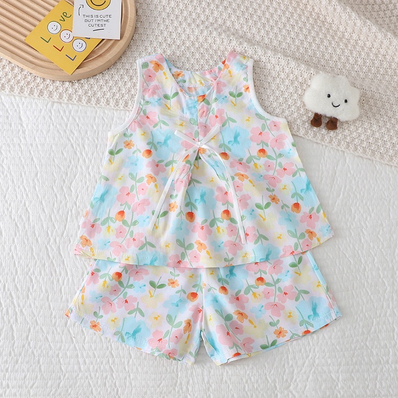 เสื้อแขนกุด กางเกงขาสั้น ชุด2ชิ้น เสื้อลายดอกไม้สวยๆ พริ้วสวย บางเบ พริ้วสวย ใส่สบาย ลายสวยน่ารัก