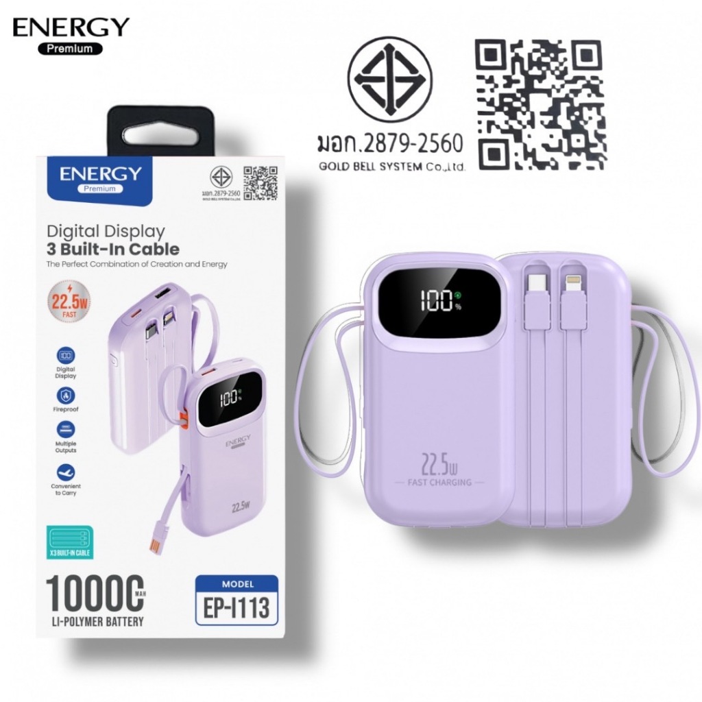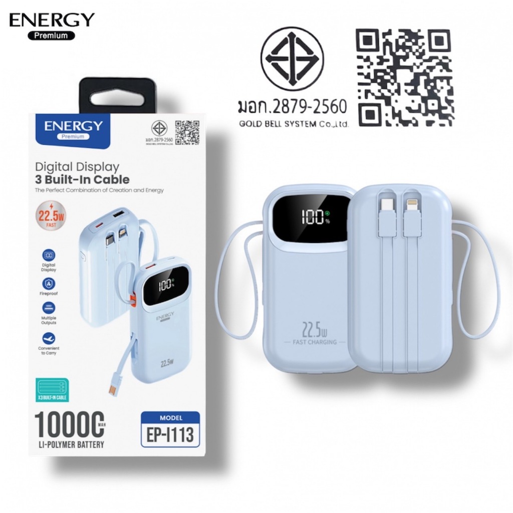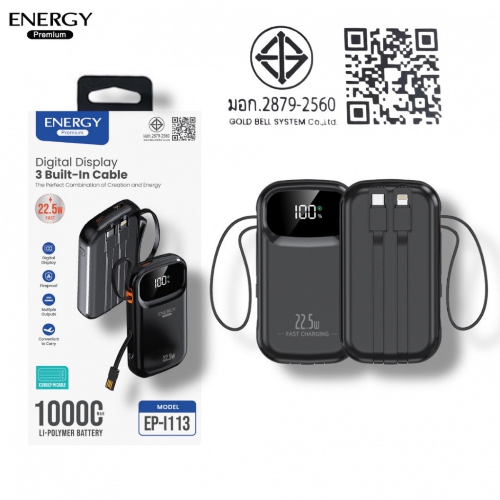 Energy Premium พาวเวอร์แบงค์ POWER BANK ความจุ 10000 mah Fast Charge 22.5W +3Cable. EP113