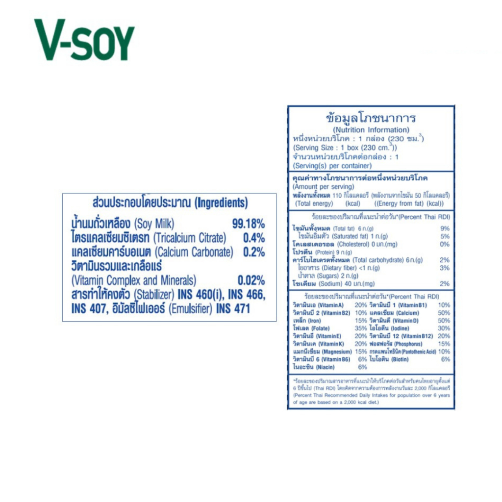 ยกลัง 36 กล่อง วีซอย (V soy) นมถั่วเหลือง ไฮแคลเซียม รสจืด 230 มล.