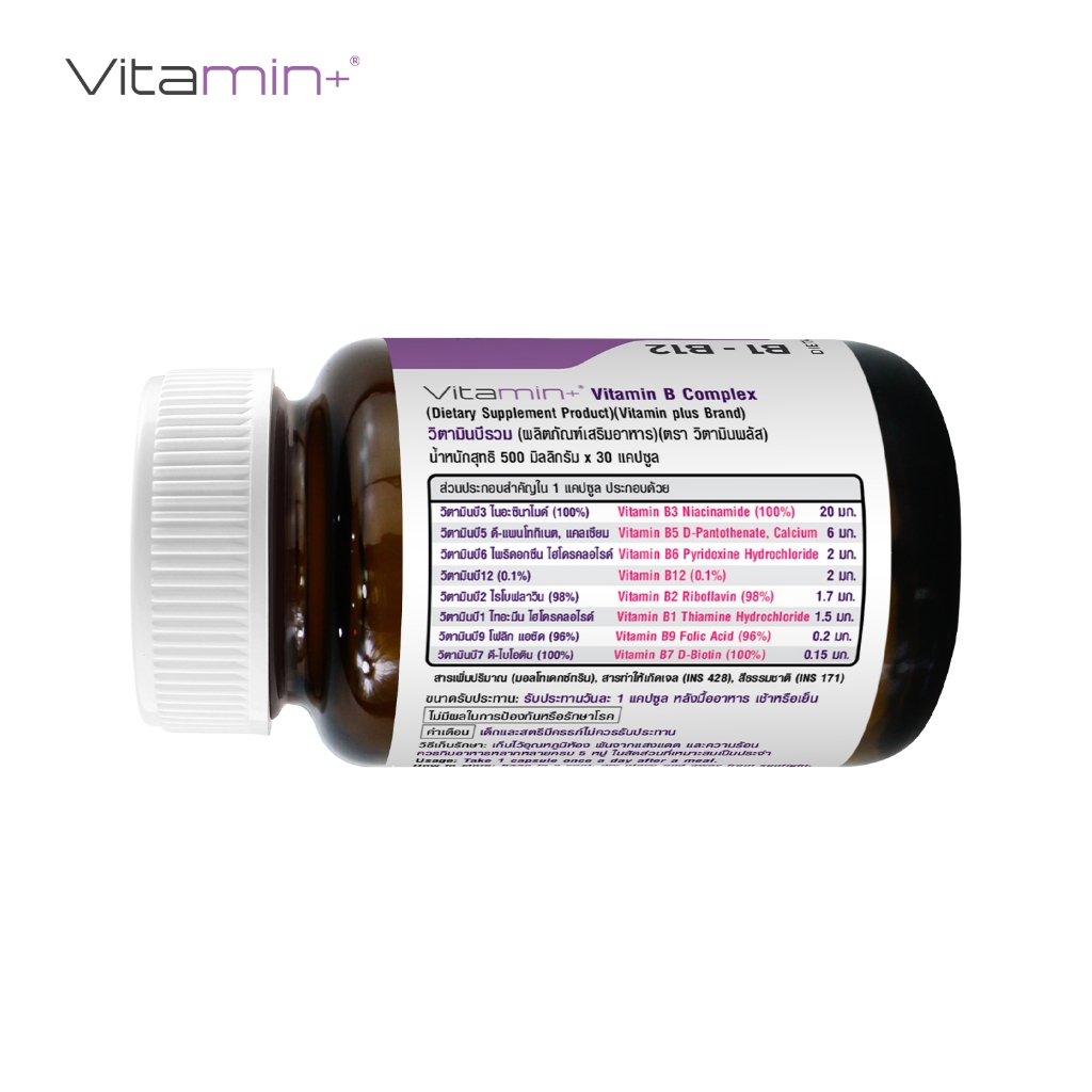 [ซื้อ 1 แถม 1] วิตามินบีรวม วิตามินพลัส Vitamin B Complex Vitamin plus Vitamin B1 B2 B3 B5 B6 B7 B9 B12