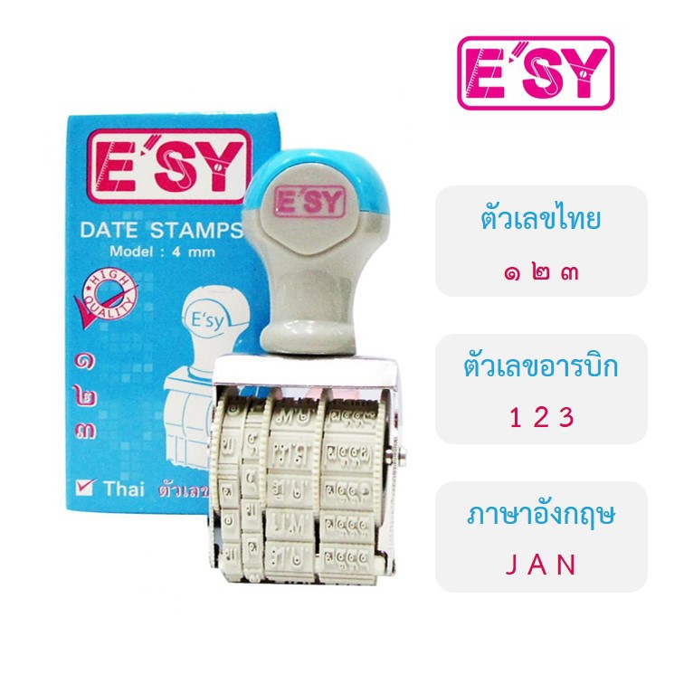 ตรายางวันที่ ยี่ห้ออีซี่ e'sy เลขอารบิก ไทย ภาษาอังกฤษ ขนาดอักษร 4 มม.(Date stamps) ตรายางอารบิก
