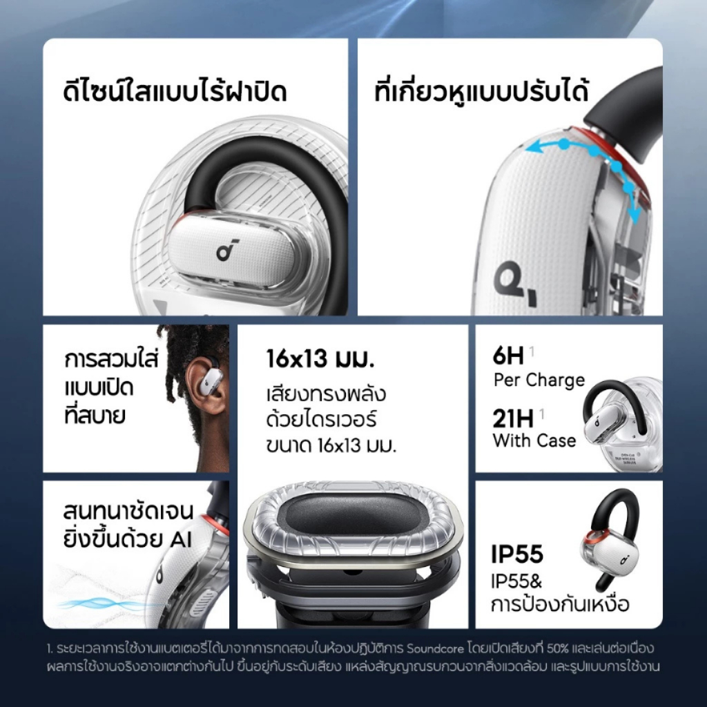 ðđðāļāļĢāļ°āļāļąāļāļĻāļđāļāļĒāđāđāļāļĒ ANKER Soundcore V40i Open-Ear Earbuds Clear Design Lidless Case āļŦāļđāļāļąāļāļāļĨāļđāļāļđāļāđāļĢāđāļŠāļēāļĒ
