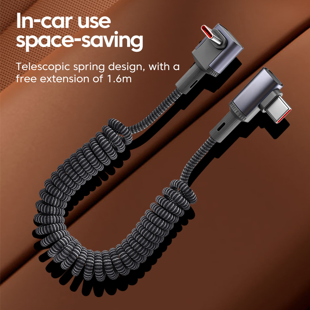 Twitch สปริงแบบพับเก็บได้ USB/ Type C Bend Spring Data Cable 100W ชาร์จเร็วสุด Dual Type-C สายชาร์จมือถือ