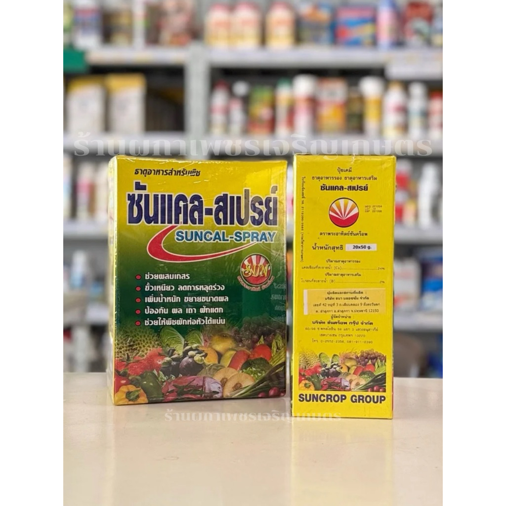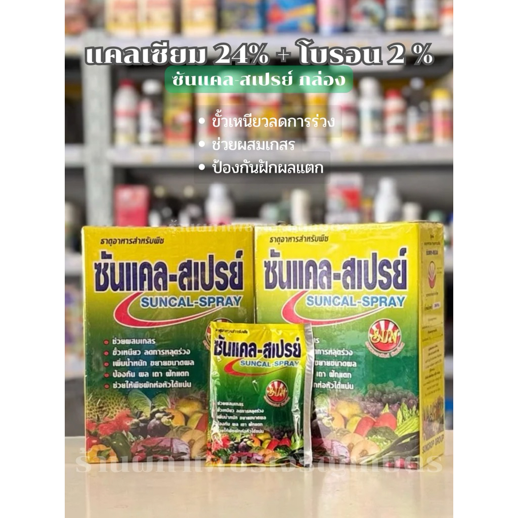 ซันแคล-สเปรย์ (กล่อง20ซอง) ฮอร์โมนพืช แคลเซียม-โบรอน ขั้วเหนียว เพิ่มจำนวนการติดผล ลูกใหญ่ บำรุงผล บำรุงต้น ซันแคลสเปรย์