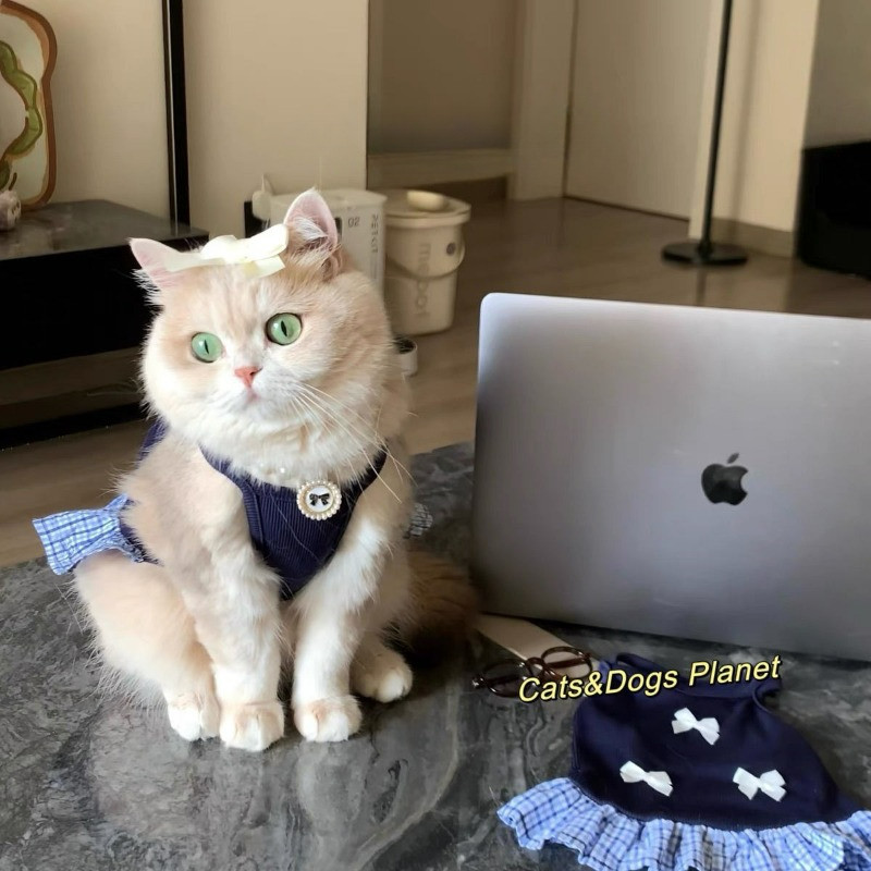 【แฟชั่นน่ารัก】ชุดกระโปรงแมวสไตล์นักเรียน - เสื้อสายเดี่ยวโบว์ริบบิ้น เนื้อบางกันขนร่วง สำหรับหน้าร้อน (ใส่ได้ทั้งสุนัข)
