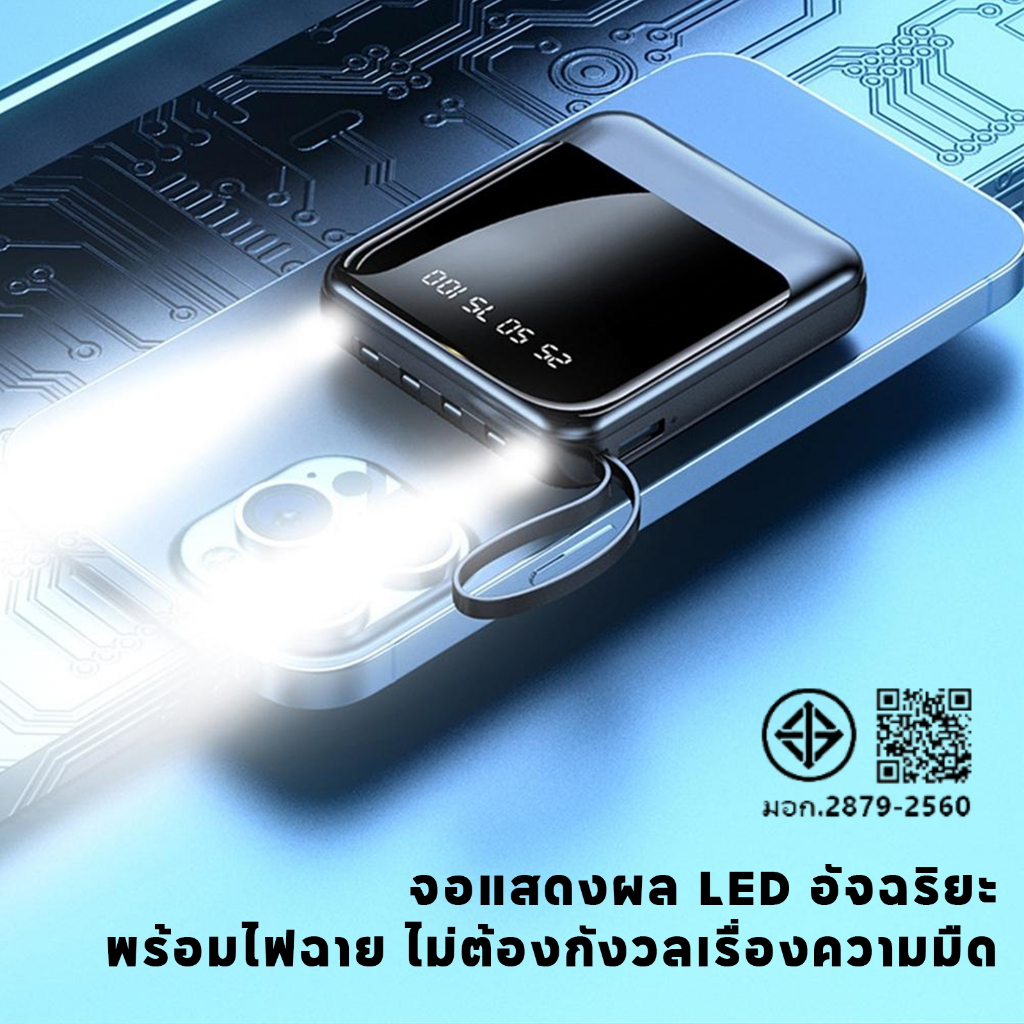 YDUN P10 Powerbank 10000mAh Fast Charge มีไฟ LED พาวเวอร์แบงค์ สายชาร์จในตัว แบตสำรอง Power bank
