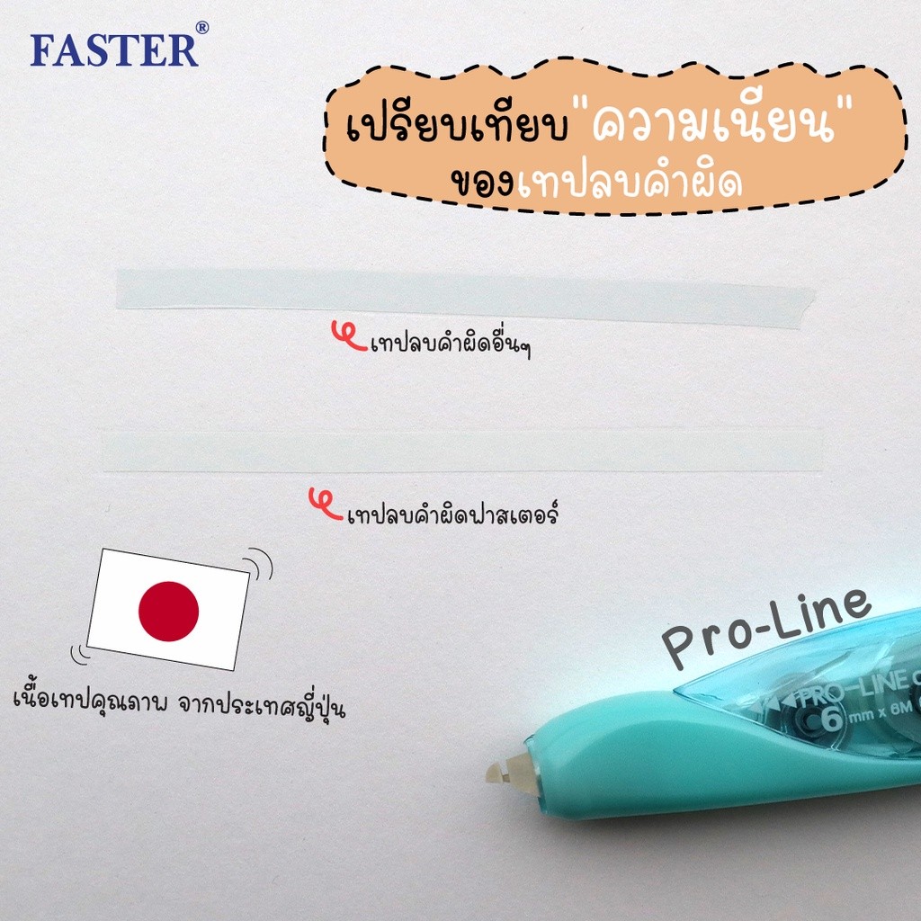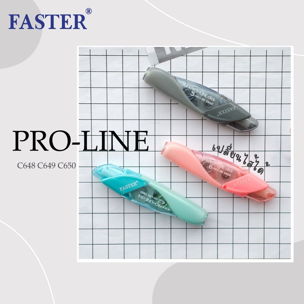 Faster Pro Line / Pro Line Plus เทปลบคำผิด เปลี่ยนไส้ได้ ลบเนียน ใช้งานง่าย มีความกว้างของเนื้อเทปให้เลือก 3 ขนาด
