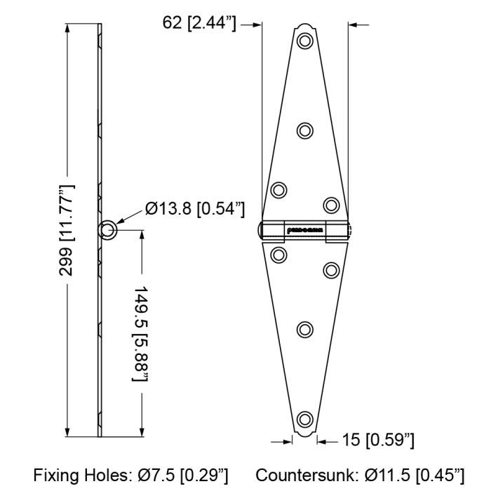 บานพับขนาดใหญ่ บานพับชุบซิงค์ PENN-ELCOM Large Strap Zinc Hinge with Countersunk Holes Part Number 1906
