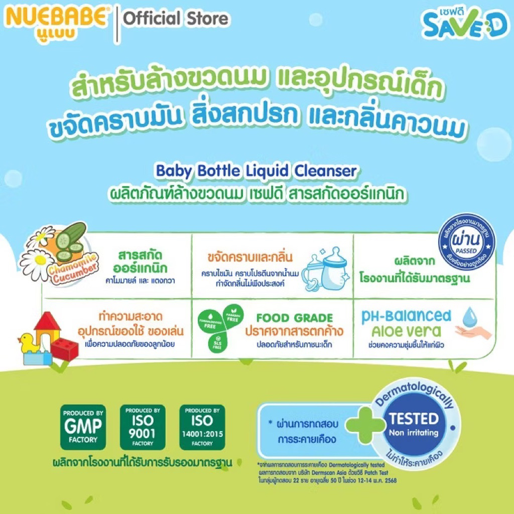 Save D ผลิตภัณฑ์ล้างขวดนมและจุกนมเซฟดี ชนิดขวด 450 มล.-MC0016(ขวดเดี่ยว)