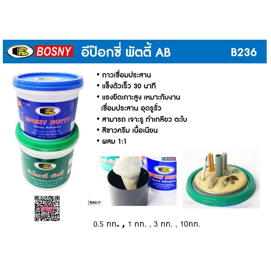 กาวเชื่อมอุดรอยรั่ว BOSNY B236 ขนาด 500 กรัม อีพ็อกซี่พัตตี้ เสียบเหล็ก BOSNY บอสนี่ รุ่น B-236 bonus
