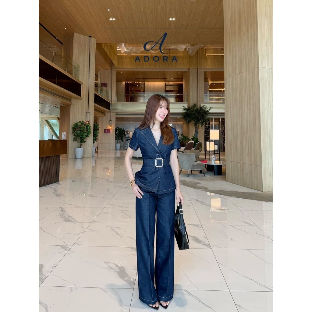 Adora ●ชุดเซ็ตเสื้อแขนสั้น+กางเกงขายาวแต่งเข็มขัดเอว