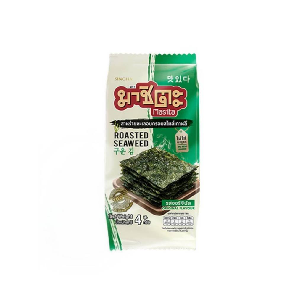 มาชิตะ สาหร่ายทะเลอบกรอบเกาหลี รสออริจินัล ขนาด 4 กรัม*6ซอง (1 แพ็ค)