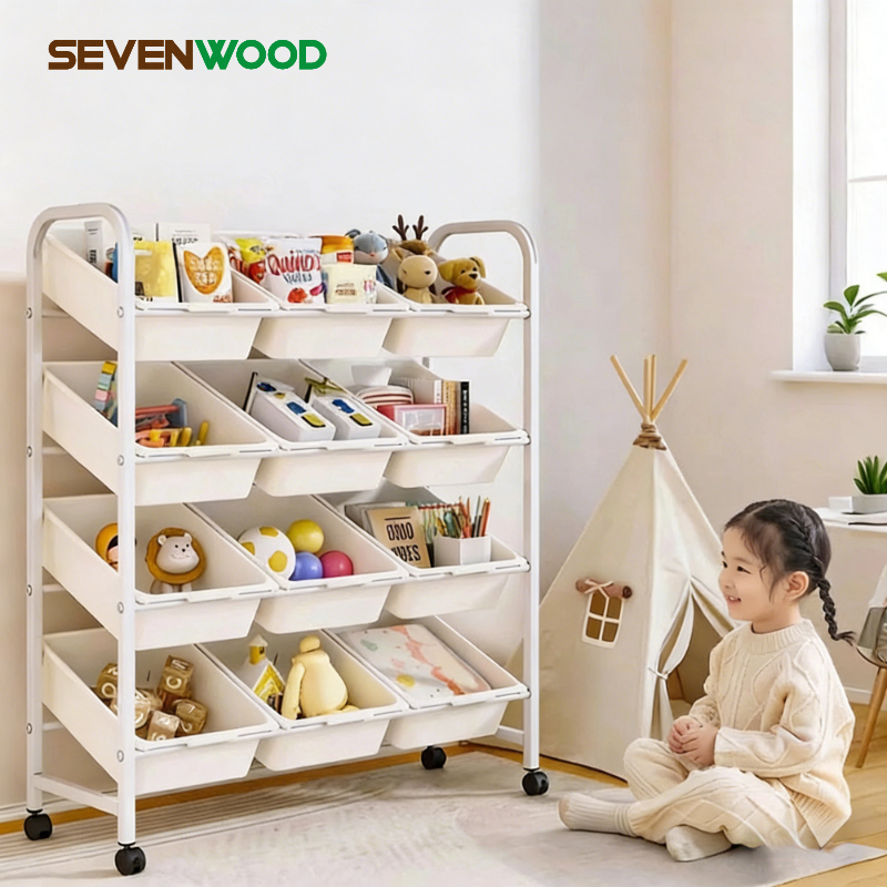 SEVENWOOD ชั้นวางของ ชั้นเก็บของ ชั้นวาง ชั้นวางขนม ชั้นพลาสติก 4ชั้น ชั้นวางของรถเข็นพลาสติก พร้อมล้อเลื่อน
