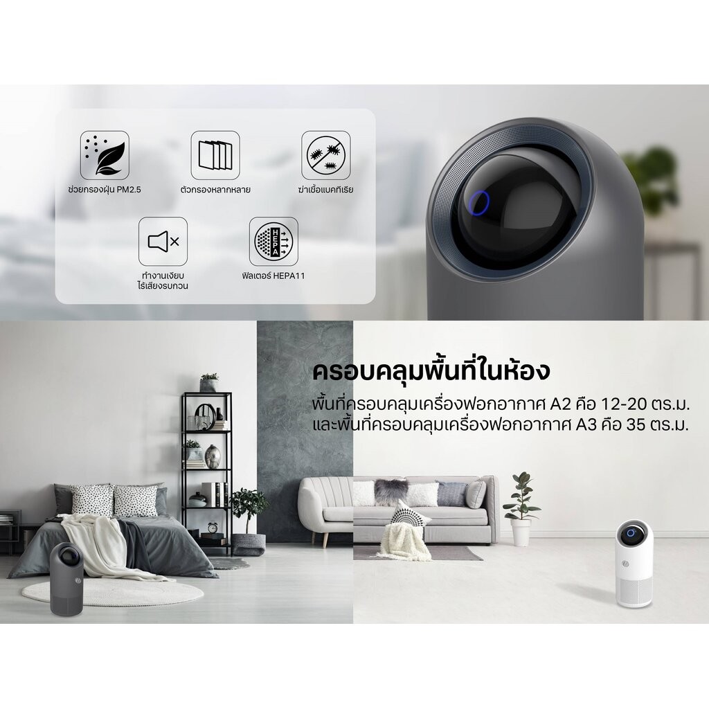 Tuya เครื่องฟอกอากาศ T3 Smart Air Purifier A3 กรอง PM2.5 เชื่อมผ่านแอปได้ เหมาะกับห้อง 35 ตารางเมตร