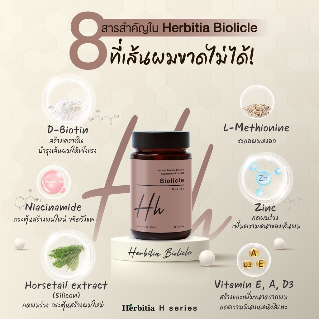 Herbitia Biolicle เฮอร์บิเทีย ไบโอลิเคิล วิตามินบำรุงเส้นผม รากผม และหนังศีรษะ บรรจุ 30 แคปซูล