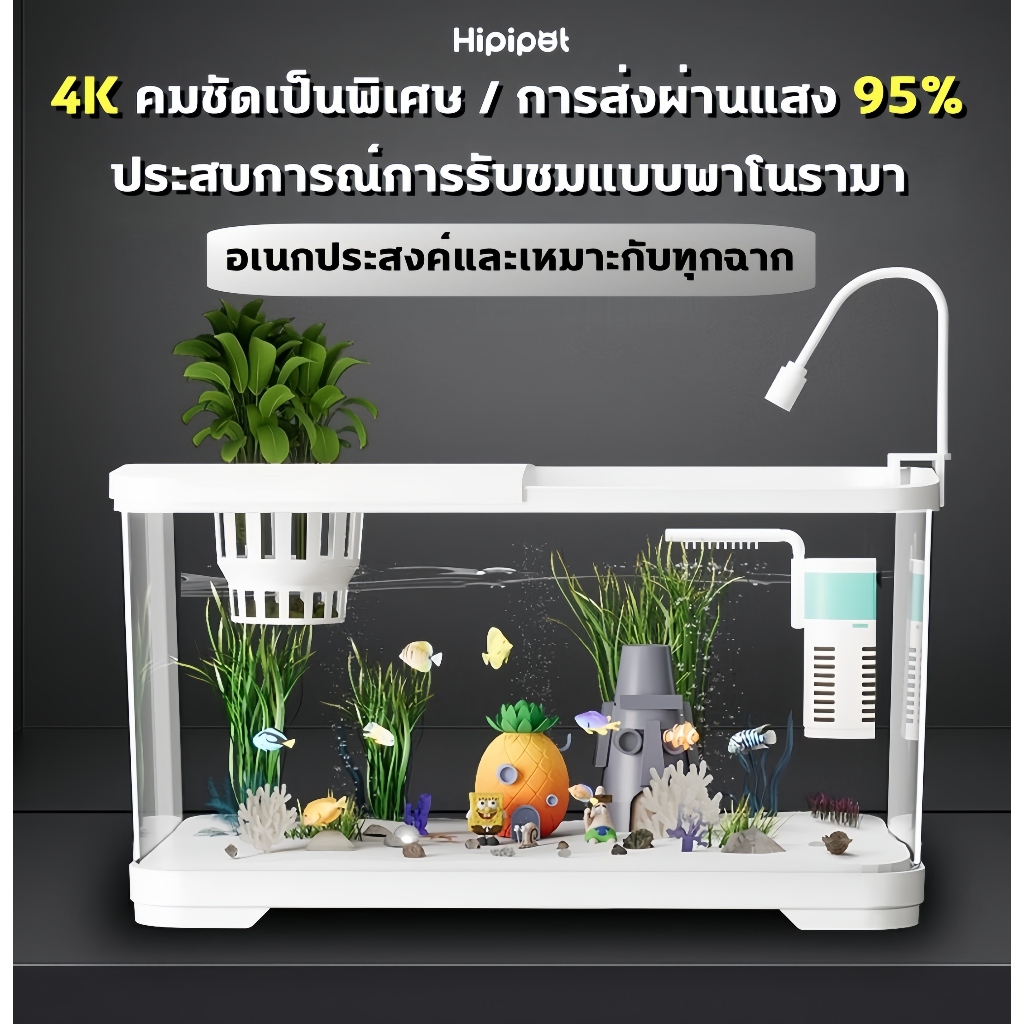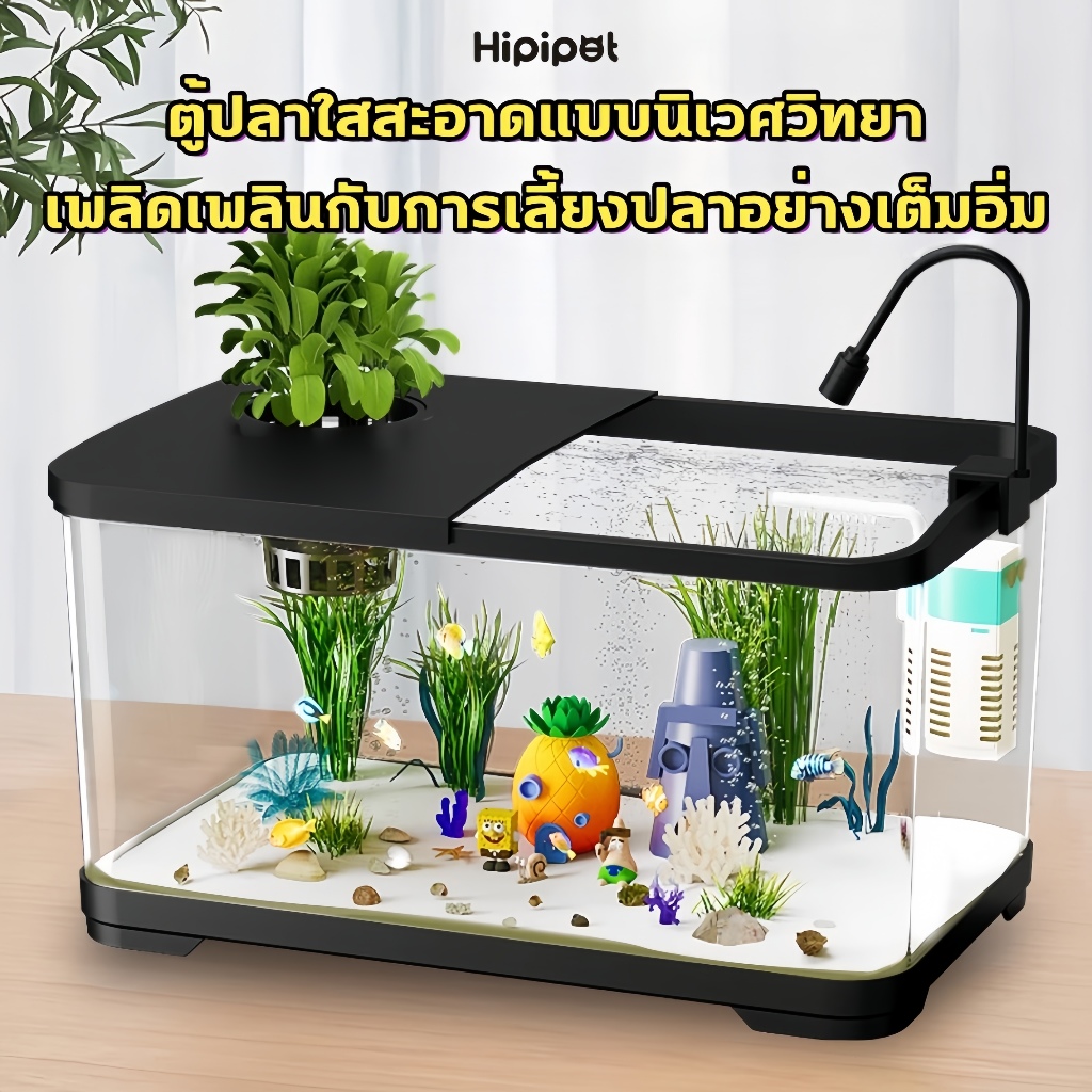 🐠ตู้ปลาตั้งโต๊ะ💦ตู้ปลา ตู้ปลาเล็ก ตู้ปลาขนาดเล็ก ตู้ปลา 12 นิ้ว พร้อมไฟและปั๊มน้ำ การออกแบบที่มีฝาปิด ตู้ปลามีฝาปิด