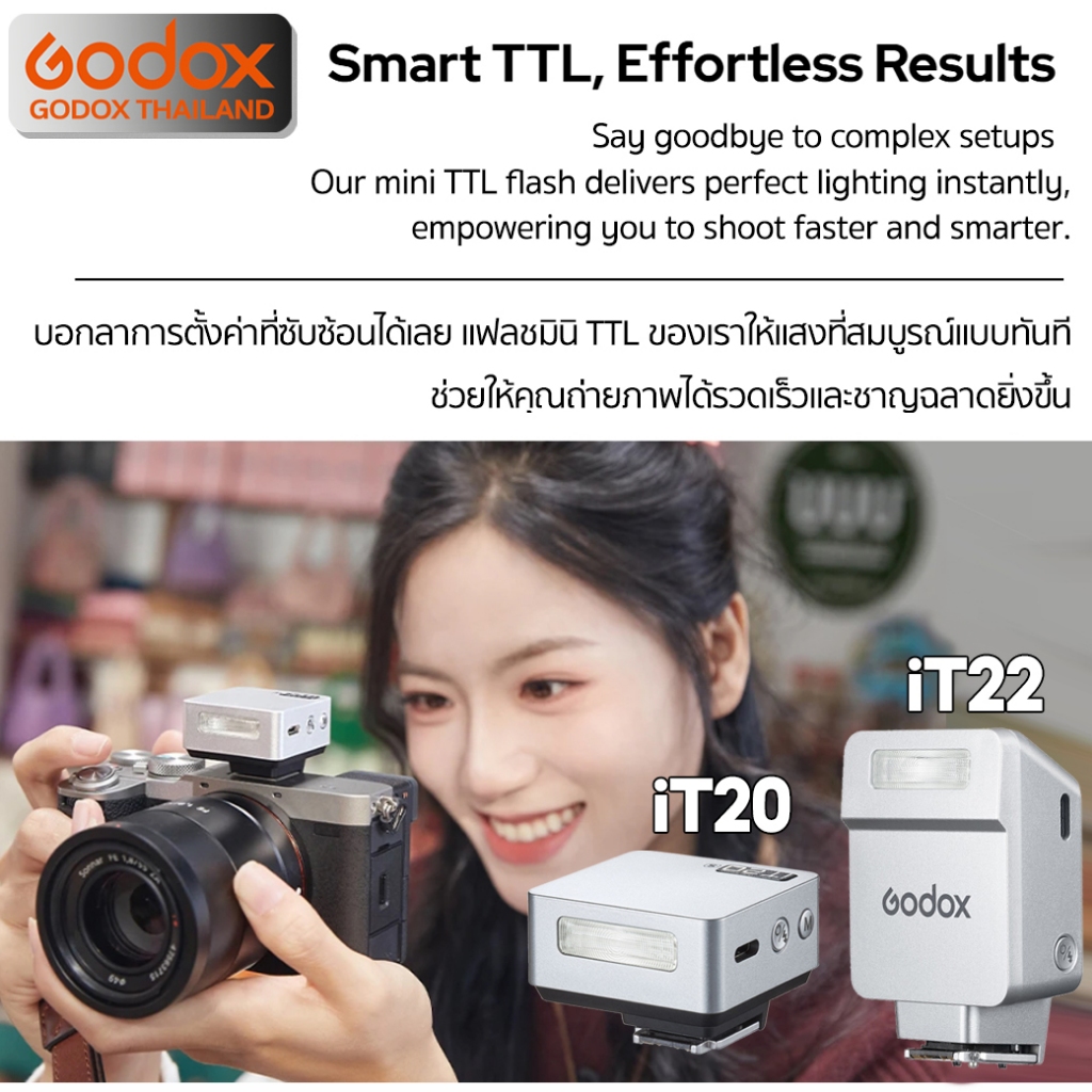Godox Flash iT20, iT22 -TTL 300mAh -For Ricoh และอื่นๆ ออโต้,แมนนวล iFlash (TR, FR-R ) / Godox Thailand
