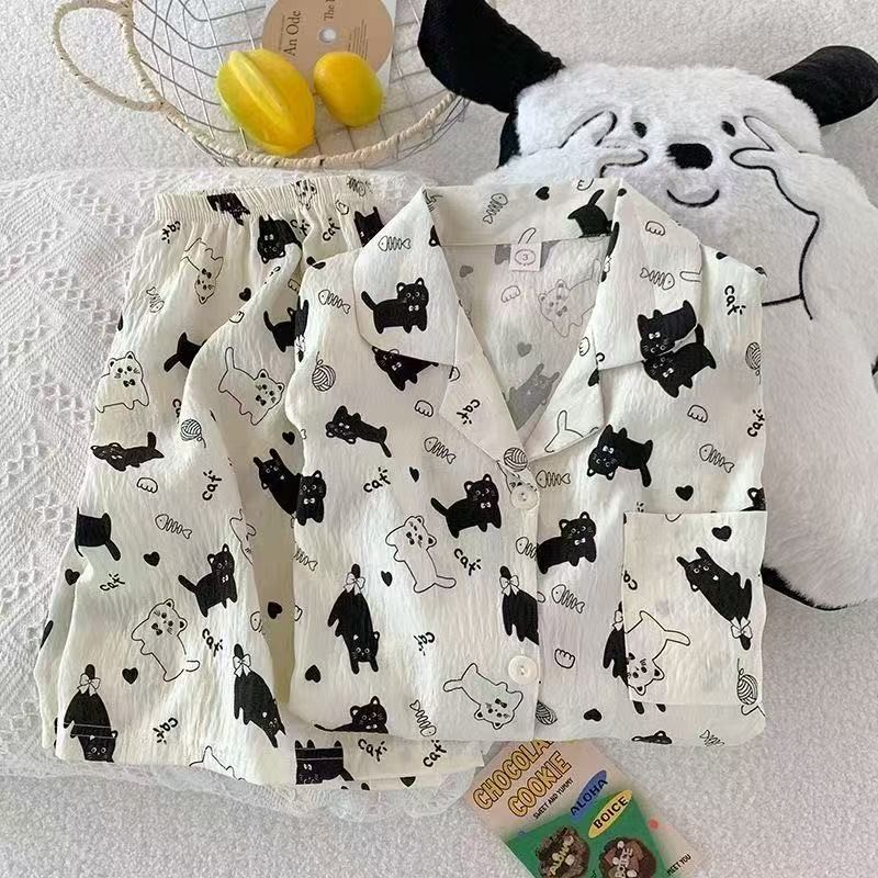 ZJ HOME ชุดนอนผู้หญิงลายการ์ตูนน่ารัก ลายมินิมอล ขาสั้น แขนสั้น ชุดนอนผู้หญิงน่ารักๆ ชุดนอนผู้หญิง ราคาสุดพิเศษ