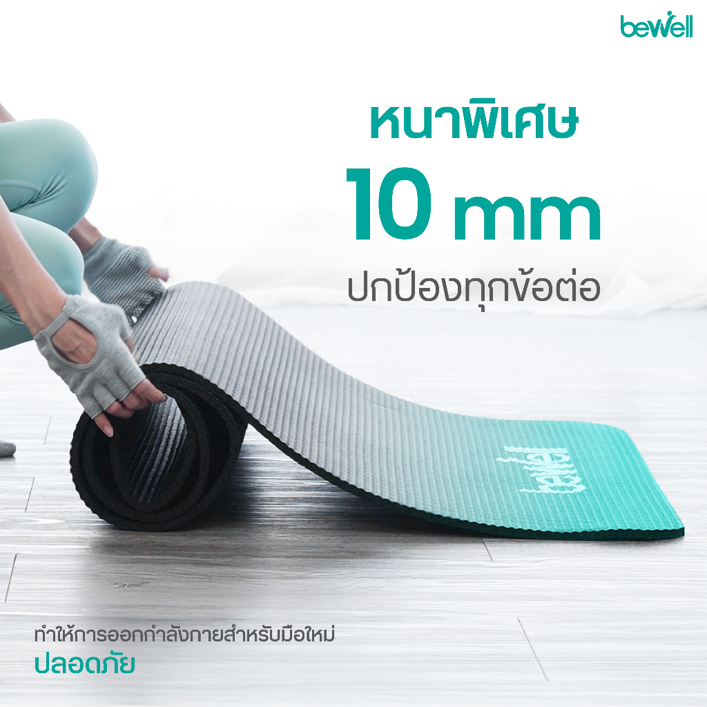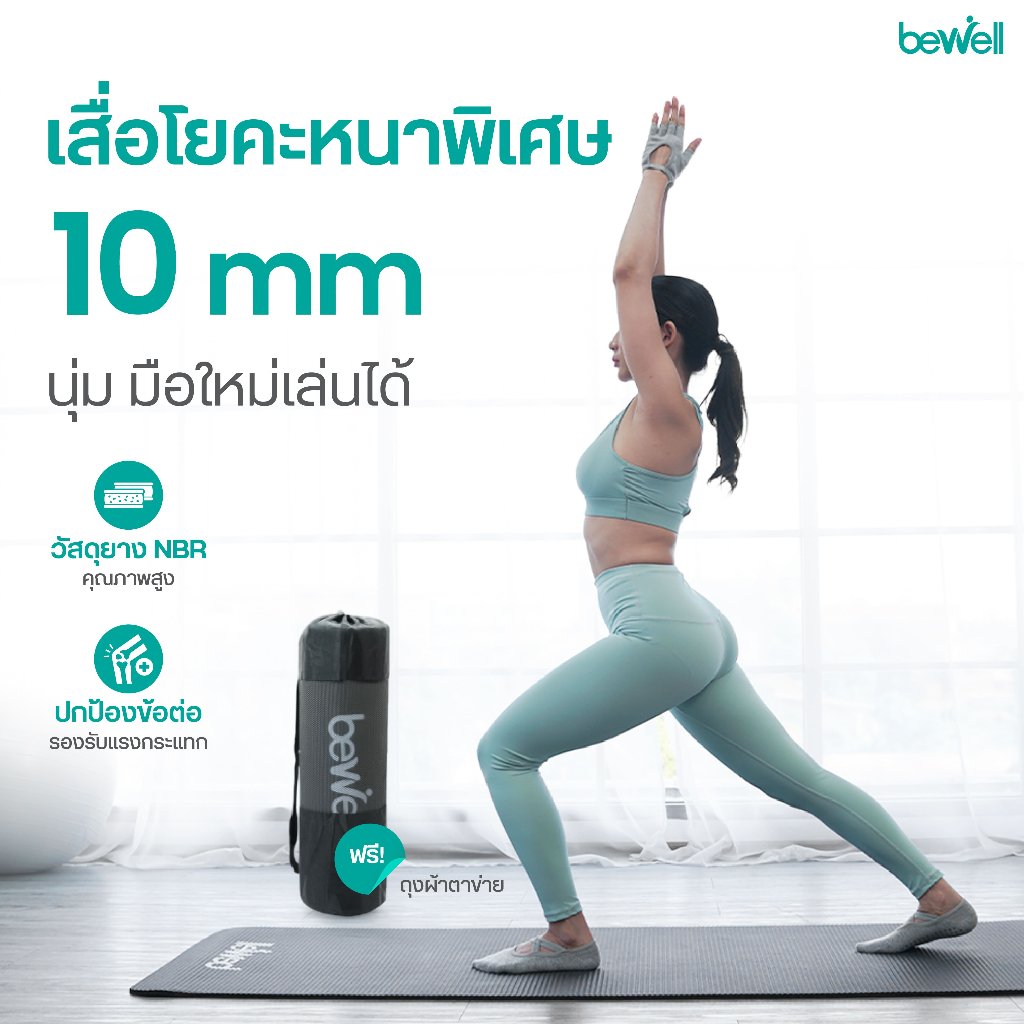 [สินค้าหลุด QC ลดแรง!] Bewell เสื่อโยคะ รุ่นหนา 10 mm. สีเทาซีดกว่าปกติ ไม่มีผลต่อการใช้งาน มาพร้อมถุงตาข่ายเก็บเสื่อ