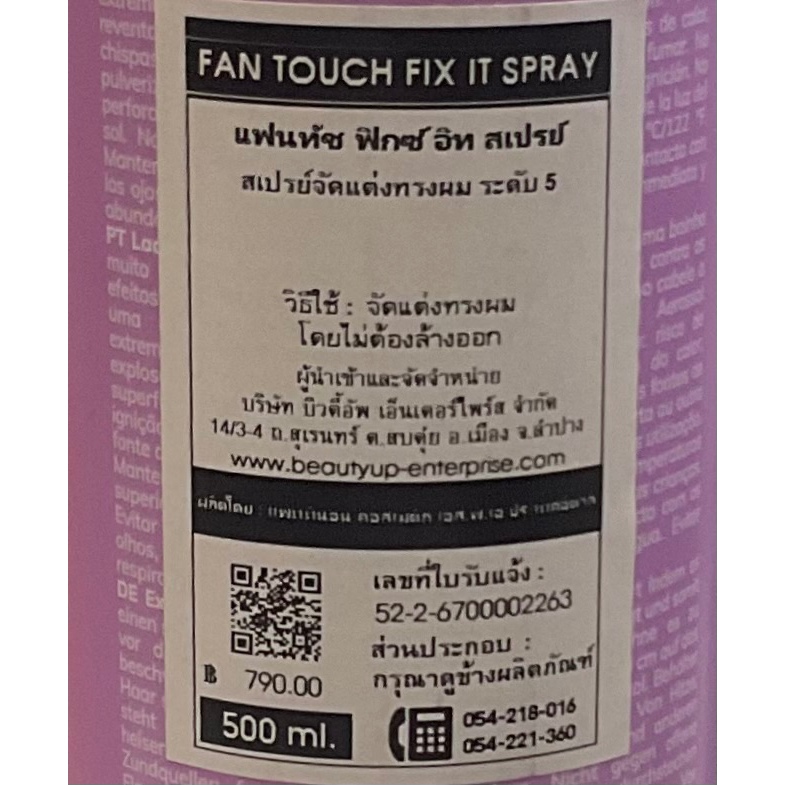 Fanola ฟาโนล่า สเปรย์ฝุ่น Fanola Fan Touch Fix It Extra Strong Hair Spray 500ml. Fantouch