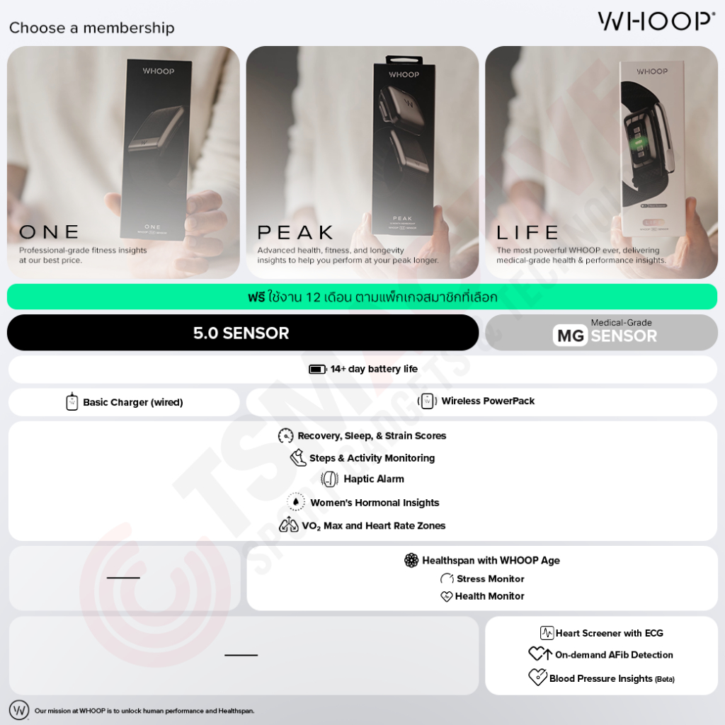 ⓦ WHOOP 5.0 ONE / PEAK / MG LIFE สายรัดข้อมือวัดชีพจร (12-Month Membership + ประกันสินค้า 1 ปี)