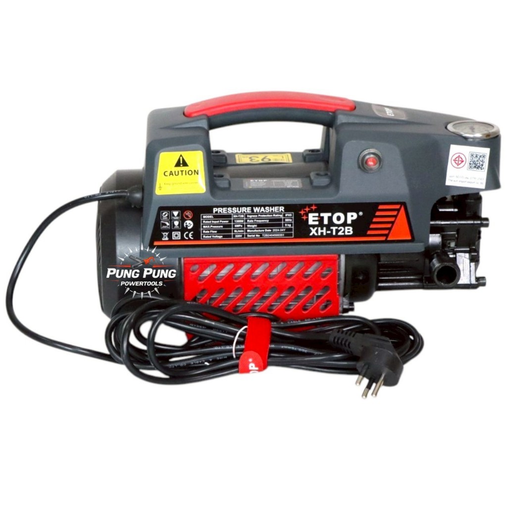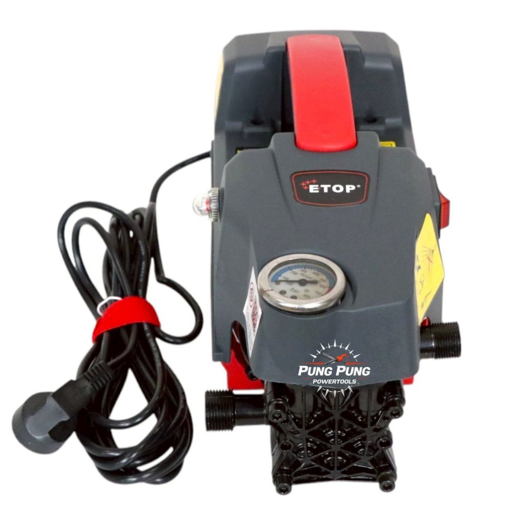 E-TOP เครื่องฉีดน้ำแรงดันสูง 60 บาร์เต็ม 1300 วัตต์ รุ่นใหม่!(มอก.) มอเตอร์เหนี่ยวนำ Induction Motor สามารถดูดน้ำได้ด้วย