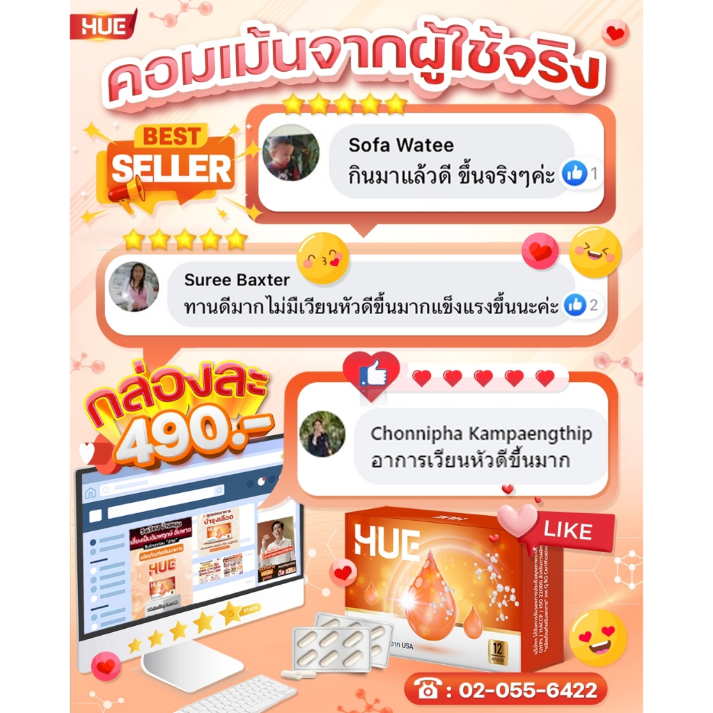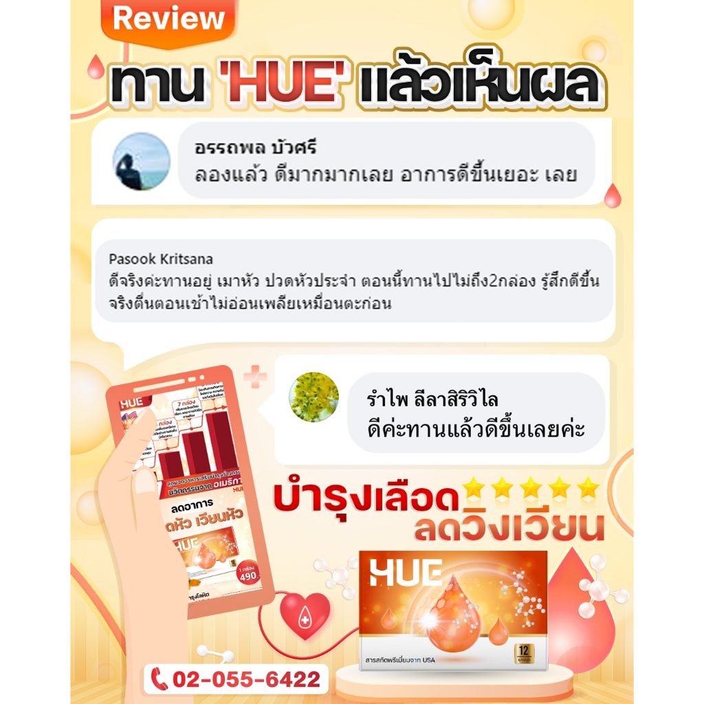 HUE โปรโมชั่น 3 ฟรี 2 กล่อง ลดอาการวิงเวียน อ่อนเพลีย บ้านหมุน บำรุงเลือด