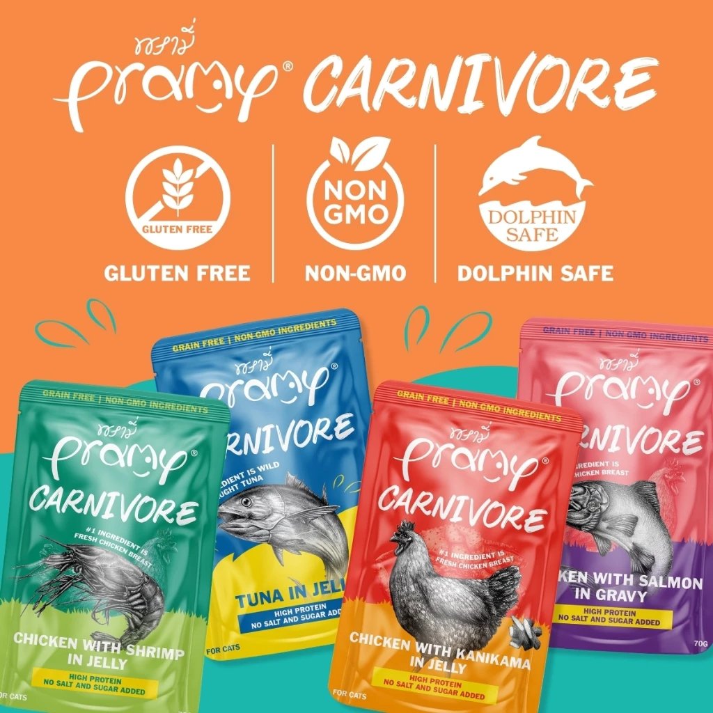 [ยกโหล12ซอง] Pramy Carnivore อาหารเปียกแมวพรามี่คานิวอร์ ขนาด 70กรัม(คละรสชาติได้)