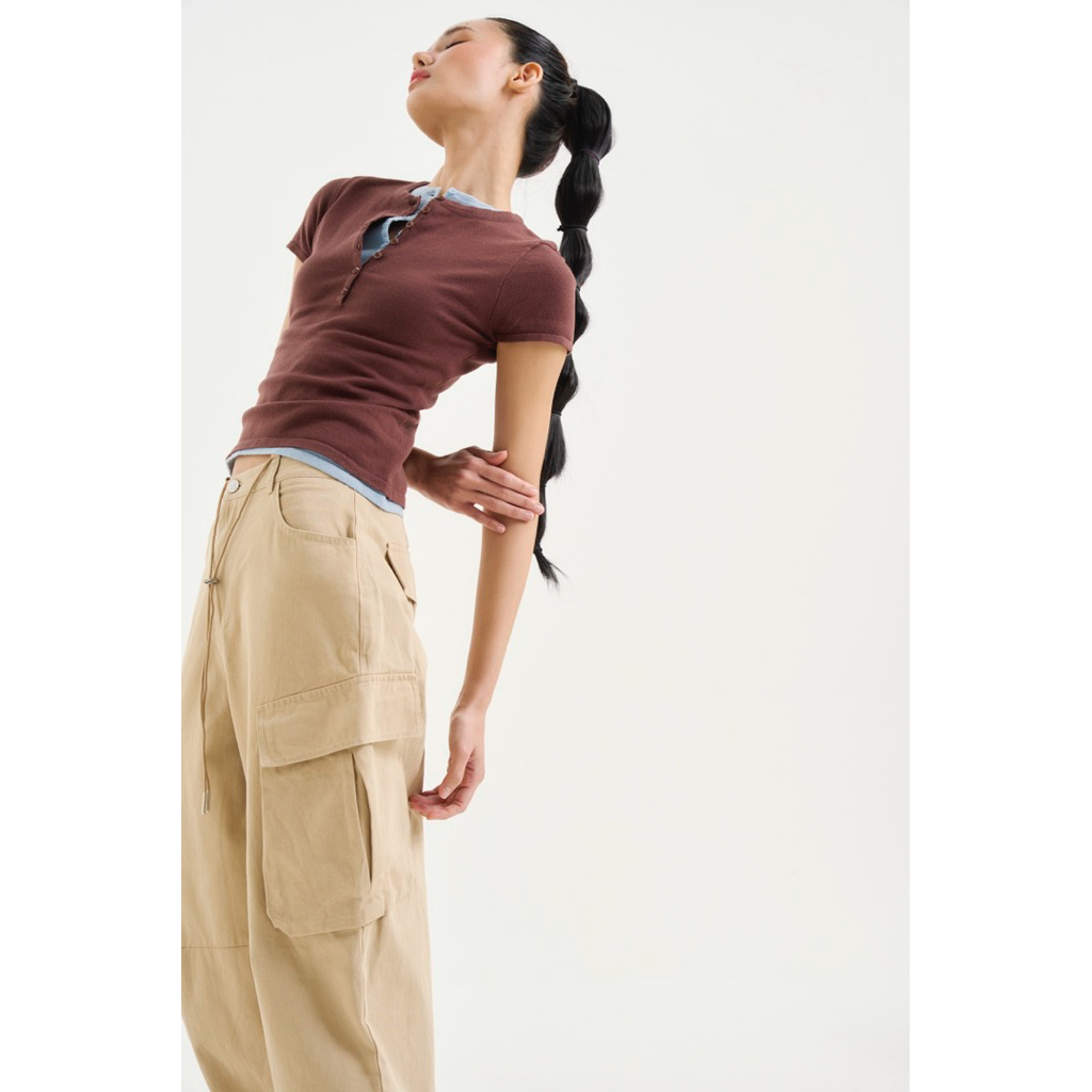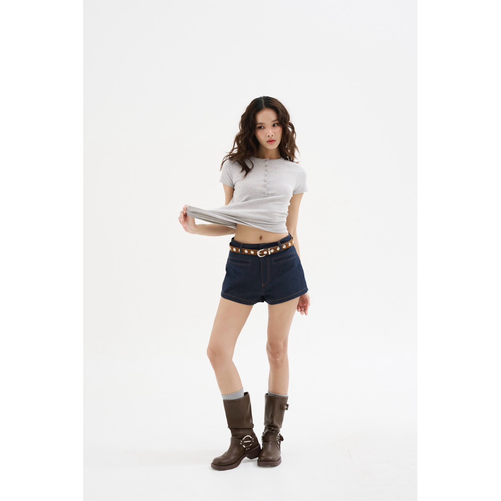 AMUSE BKK - Muffin Knit top เสื้อนิตแขนสั้นคอกลม ดีเทลกระดุม ผ้าเนื้อนุ่มบางใส่สบาย