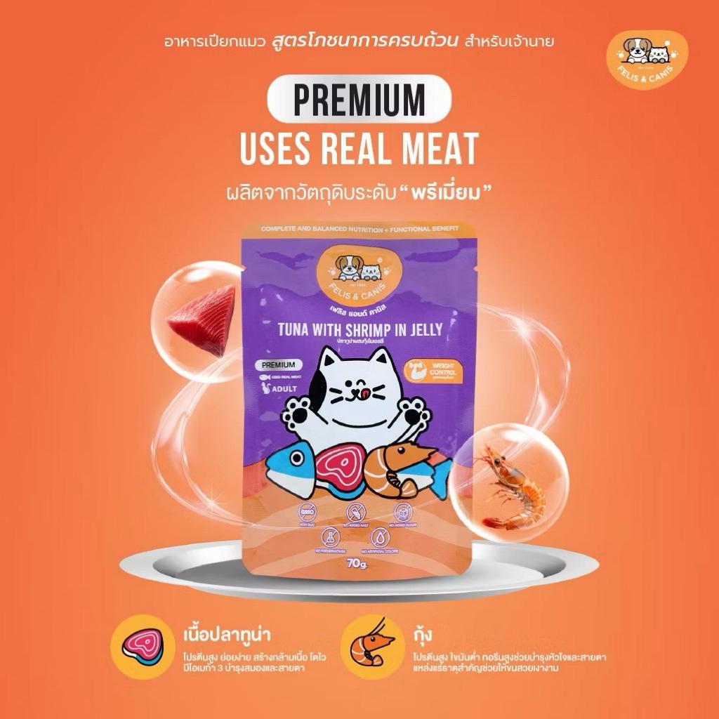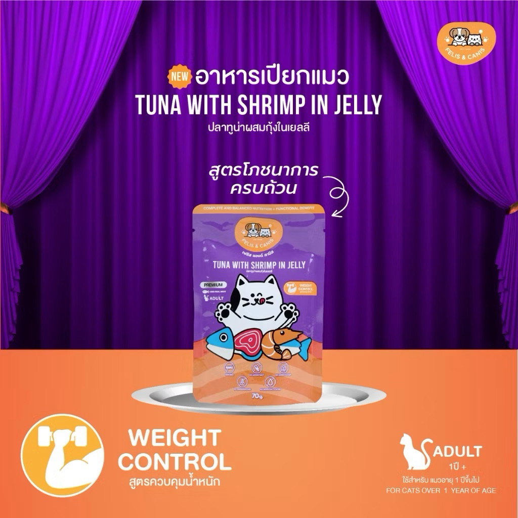 FELIS CANIS Tuna Shrimp Jelly 70g อาหารเปียกแมว ทูน่าผสมกุ้งในเยลลี่ 12ซอง คุมน้ำหนัก Petus Kingkaew
