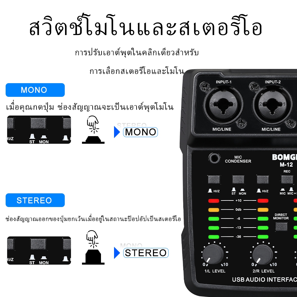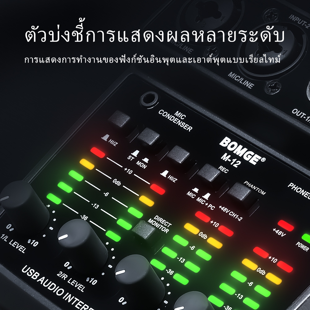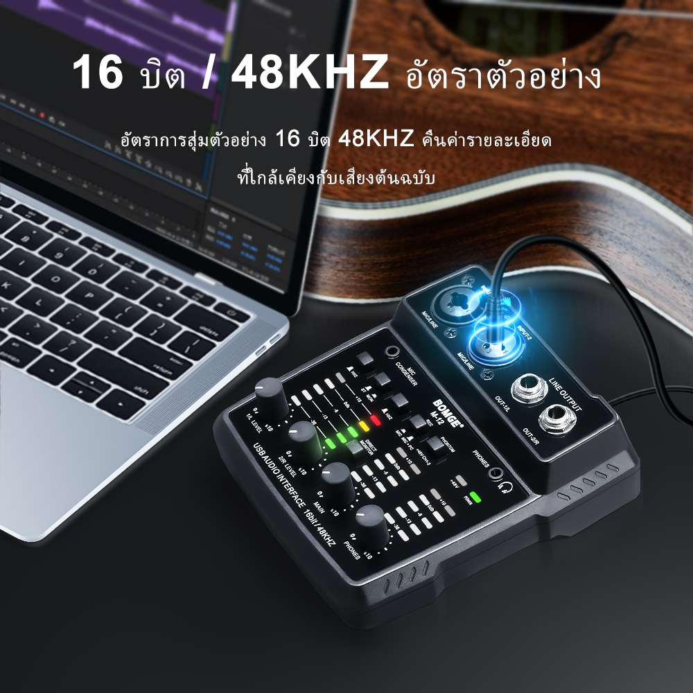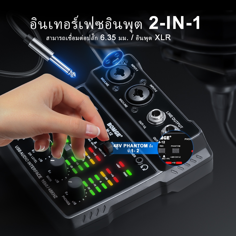BOMGE BM-05 เครื่องผสมเสียง 5 ช่อง Mini Mixer USB ไมค์ 48V sound card พกพาง่าย เหมาะกับห้องบันทึกเสียง & DJ สนับสนุนโทรศ