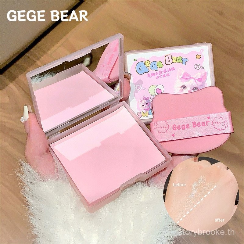 Gege Bear กระดาษซับน้ํามันพร้อมพัฟและกล่องกระจกที่เก็บของแบบพกพา IVSY