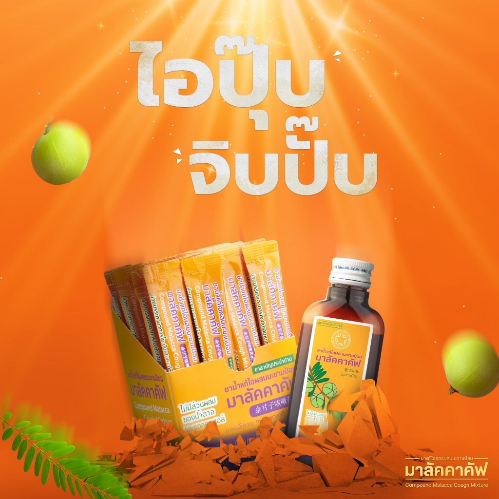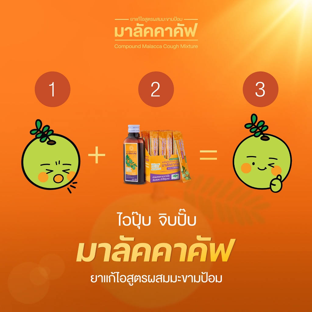 Malacca ยาน้ำแก้ไอ ผสมมะขามป้อม มาลัคคาคัฟ Compound Makhampom Mixture Cough 60ccX12ขวด