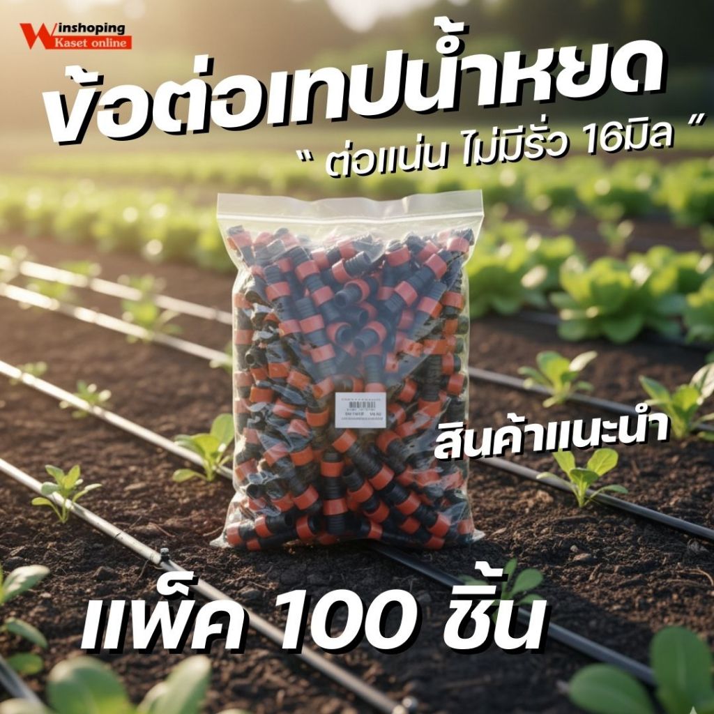 ข้อต่อตรงเทปน้ำหยด ข้อต่อเทปน้ำหยด สายน้ำหยด แบบดึง สวม ล็อค ขนาด 16 มิล มีให้เลือกหลายจำนวน คละสี