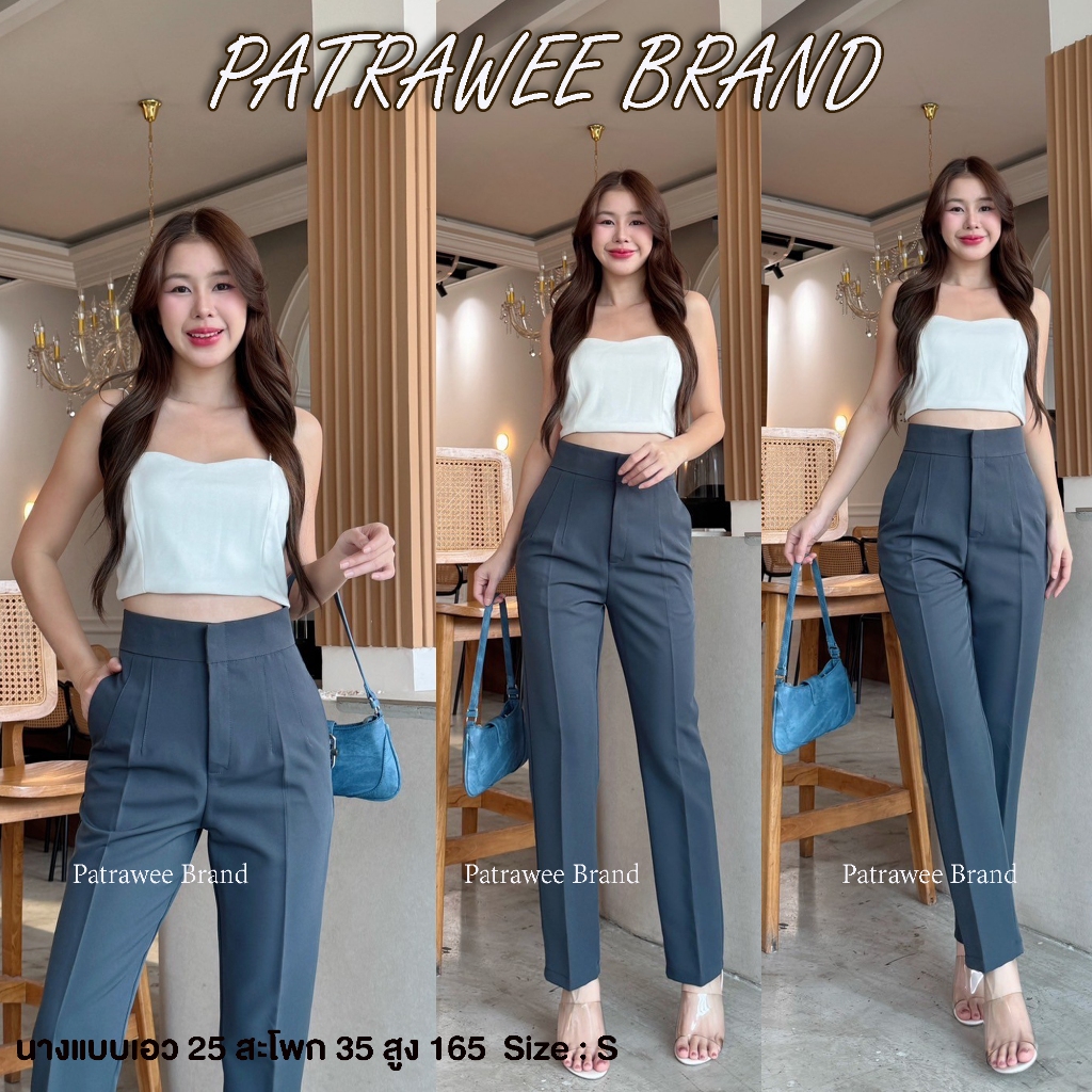 New!! P41 กางเกงกระบอกเล็กทรงบอย กางเกงทรงบอย กางเกงใส่ทำงานผู้หญิงเอวสูงทรงสวย ผ้าลิลลี่พรีเมี่ยม