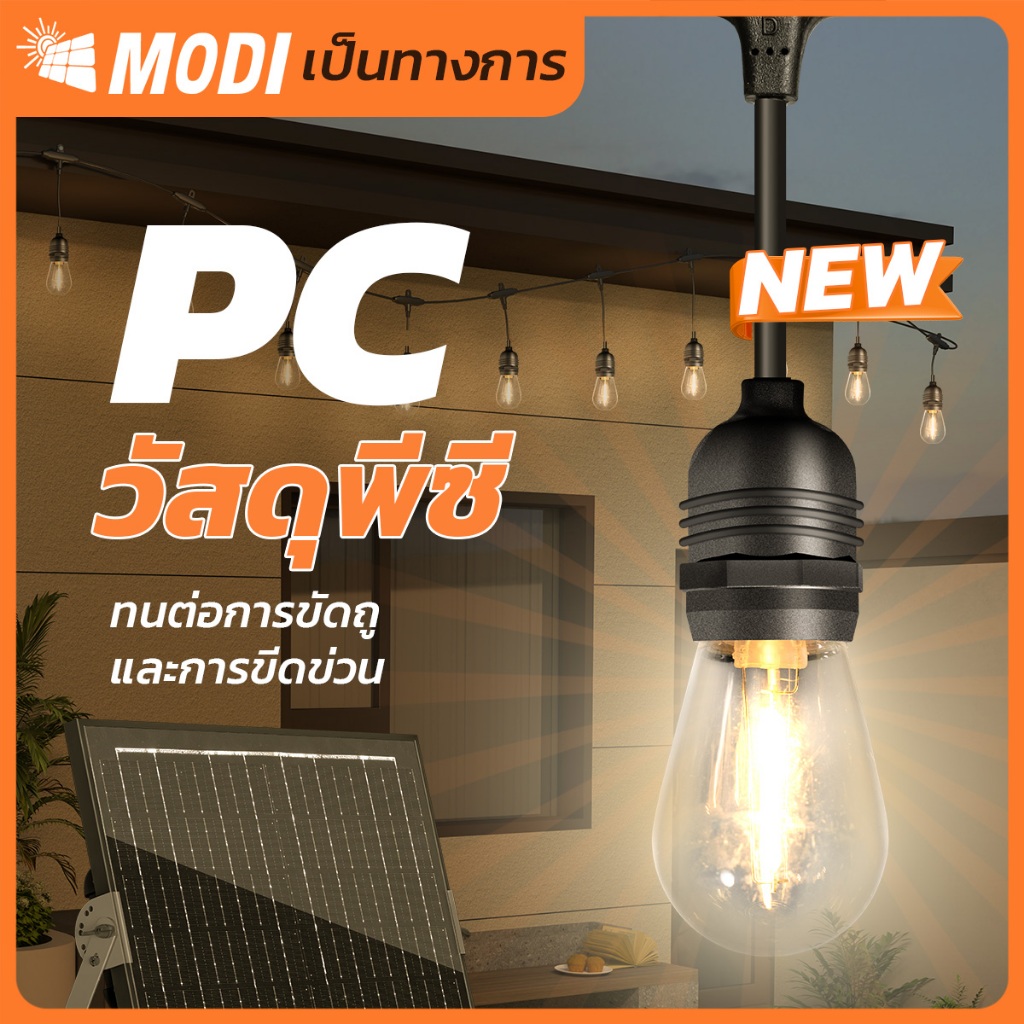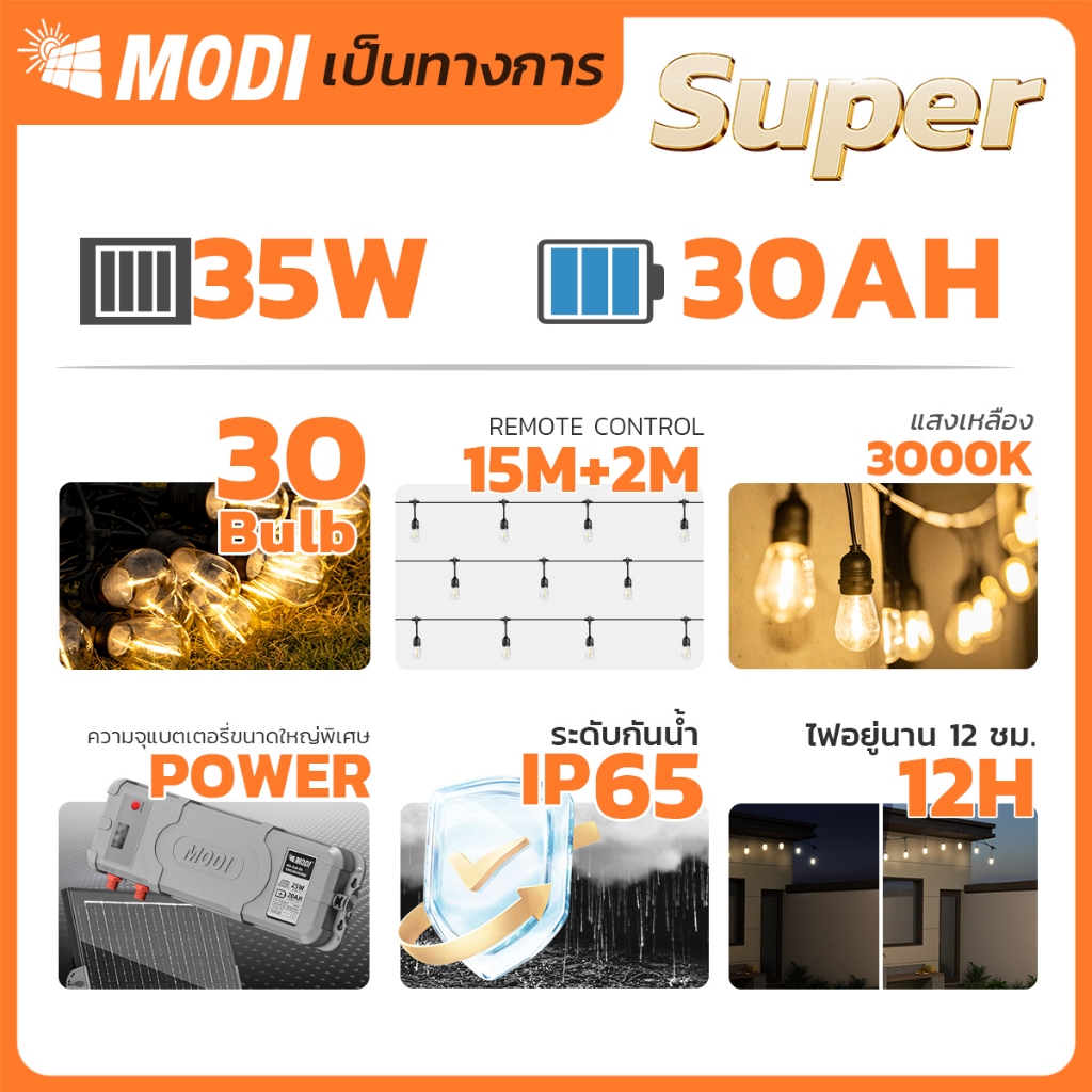 MODI ไฟห้อยระย้าโซล่าเซลล์ 15เมตร30หลอด รุ่นSUPER แสงเหลือง ตกแต่งสวน ปีใหม่ คริสมาส ปาร์ตี้