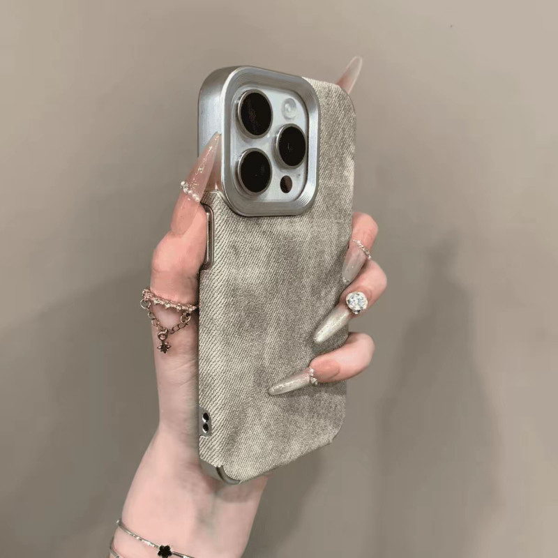 Retro Denim ผ้าชุบเลนส์เงินเคสโทรศัพท์สําหรับ iPhone 16Promax 16Pro 15Promax 12 13 14 Pro Max 17Promax 17Pro กันกระแทกผู้ชายผู้หญิงมือถือ