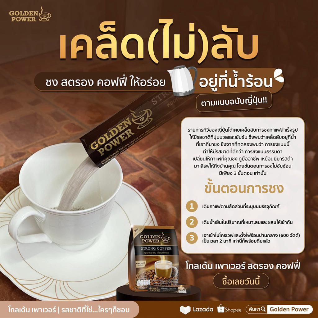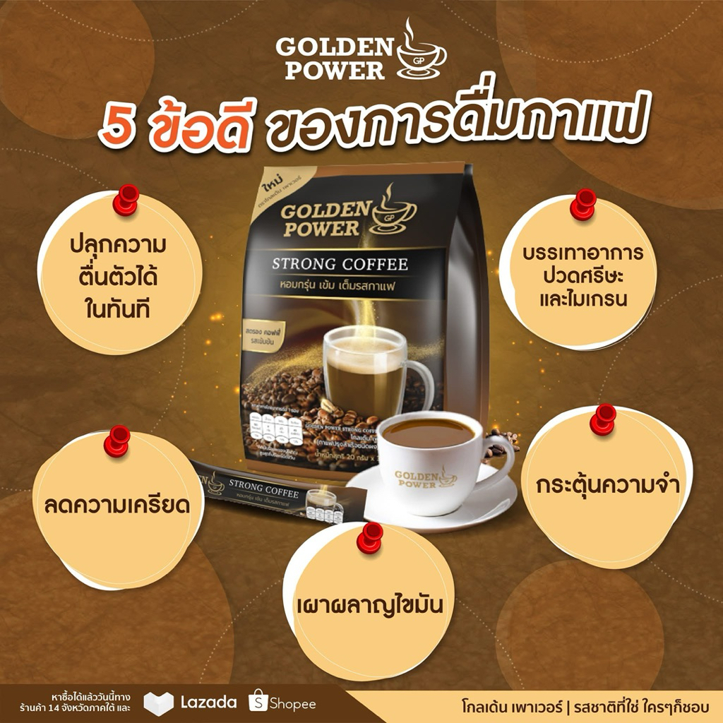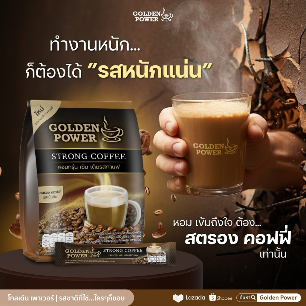 กาแฟโกลเด้นพาวเวอร์1แถม1มีฮาลาล3in1เข้มสะใจ60ซอง