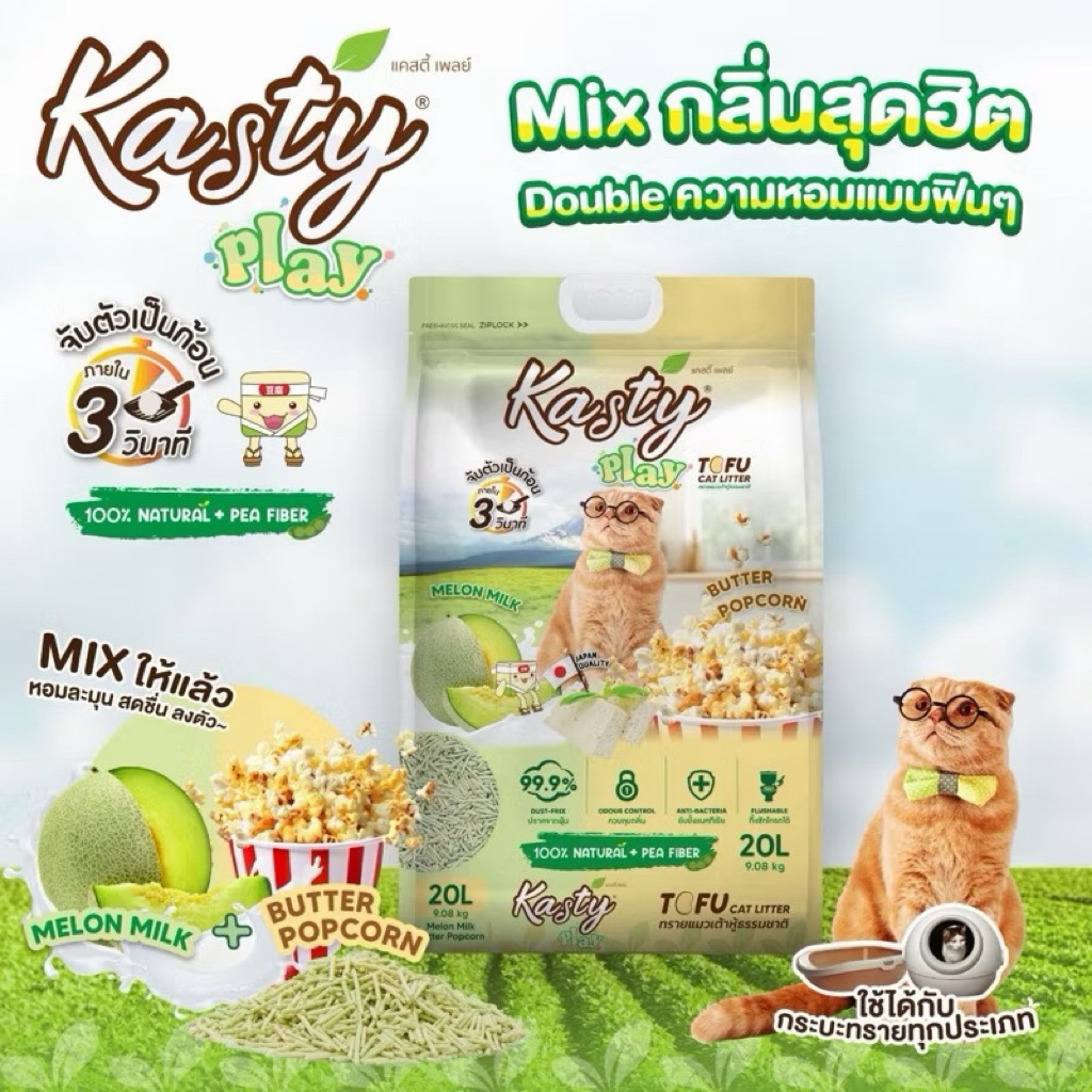 Kasty แคสตี้ ทรายแมวเต้าหู้ธรรมชาติ ขนาด 20 ลิตร ยกลัง 2 ถุง‼️ ดับกลิ่นดีเยี่ยม ทิ้งชักโครกได้ จับตัวเร็ว