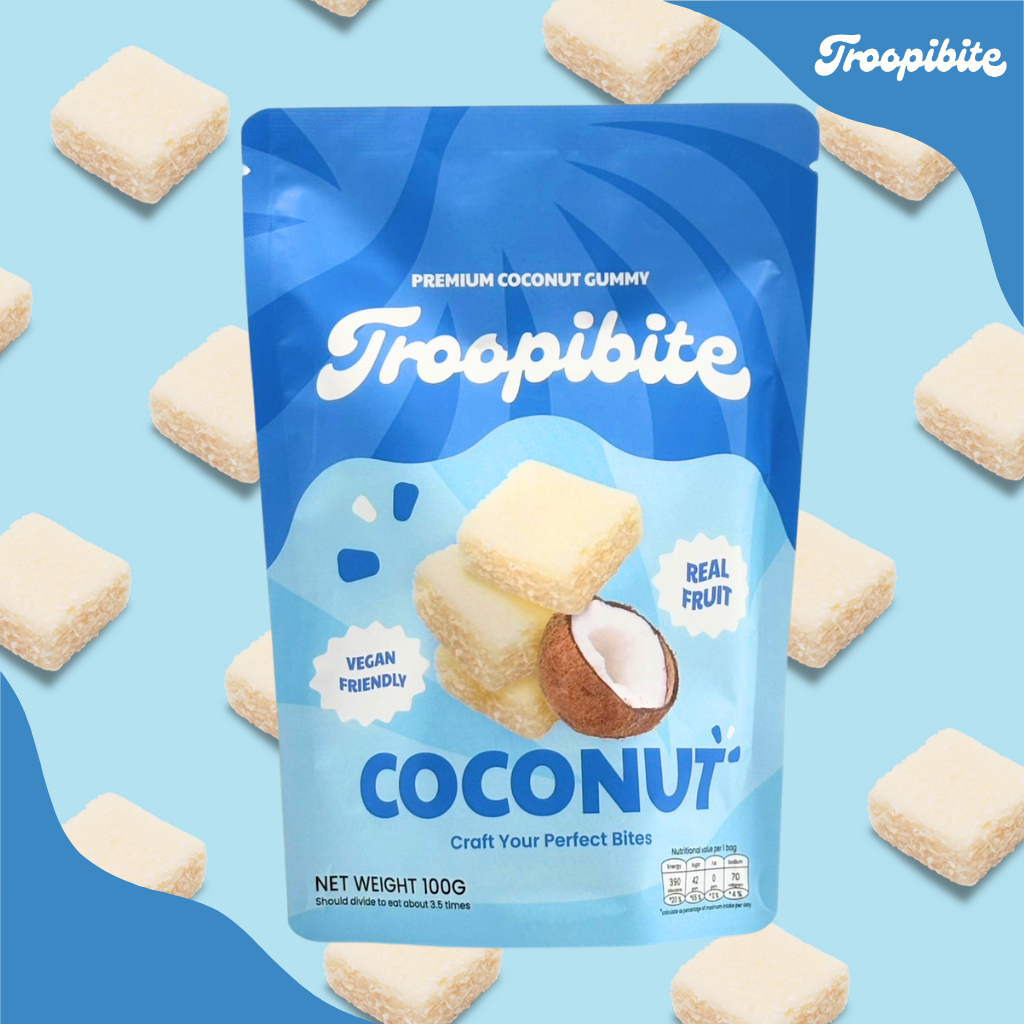 Troopibite เยลลี่ผลไม้พรีเมียม Vegan ผลไม้แท้ 60% รสมะพร้าว (100 กรัม)