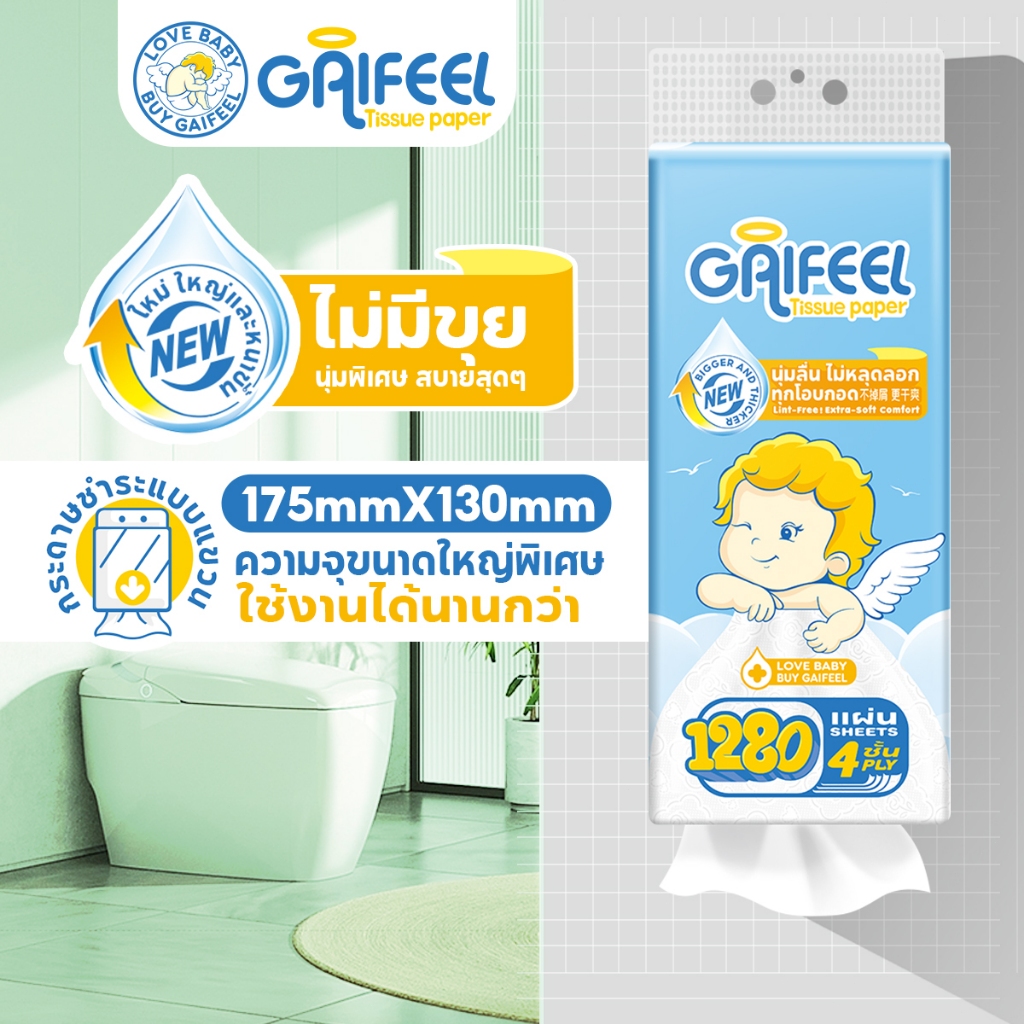 GAIFEEL ทิชชู่แบบดึงแขวนได้ การออกแบบ 4 ชั้น 7680 แผ่นใน 6 แพ็ค