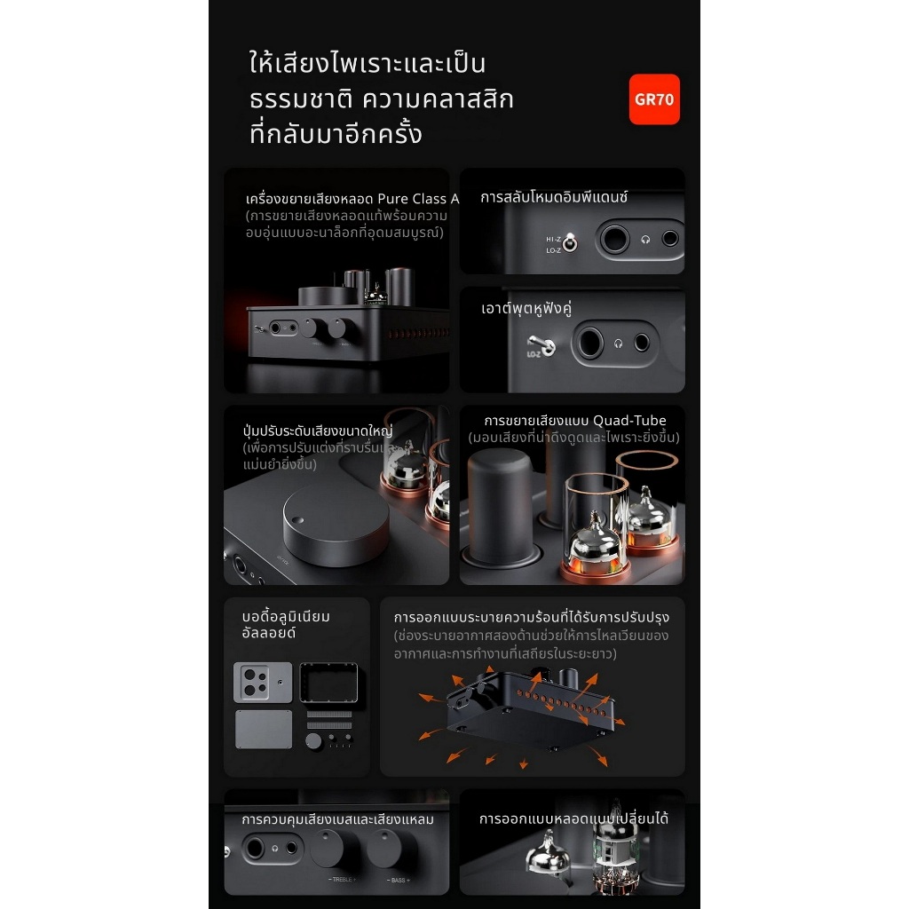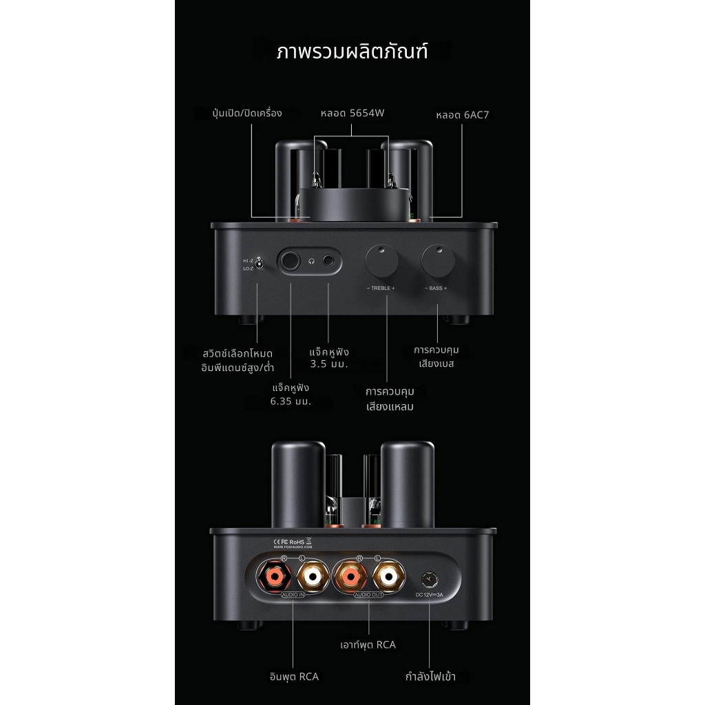 [ประกันศูนย์ไทย] Fosi Audio GR70 แอมป์หลอดแก้วสุญญากาศสำหรับเครื่องเสียงให้เสียงนุ่มนวล