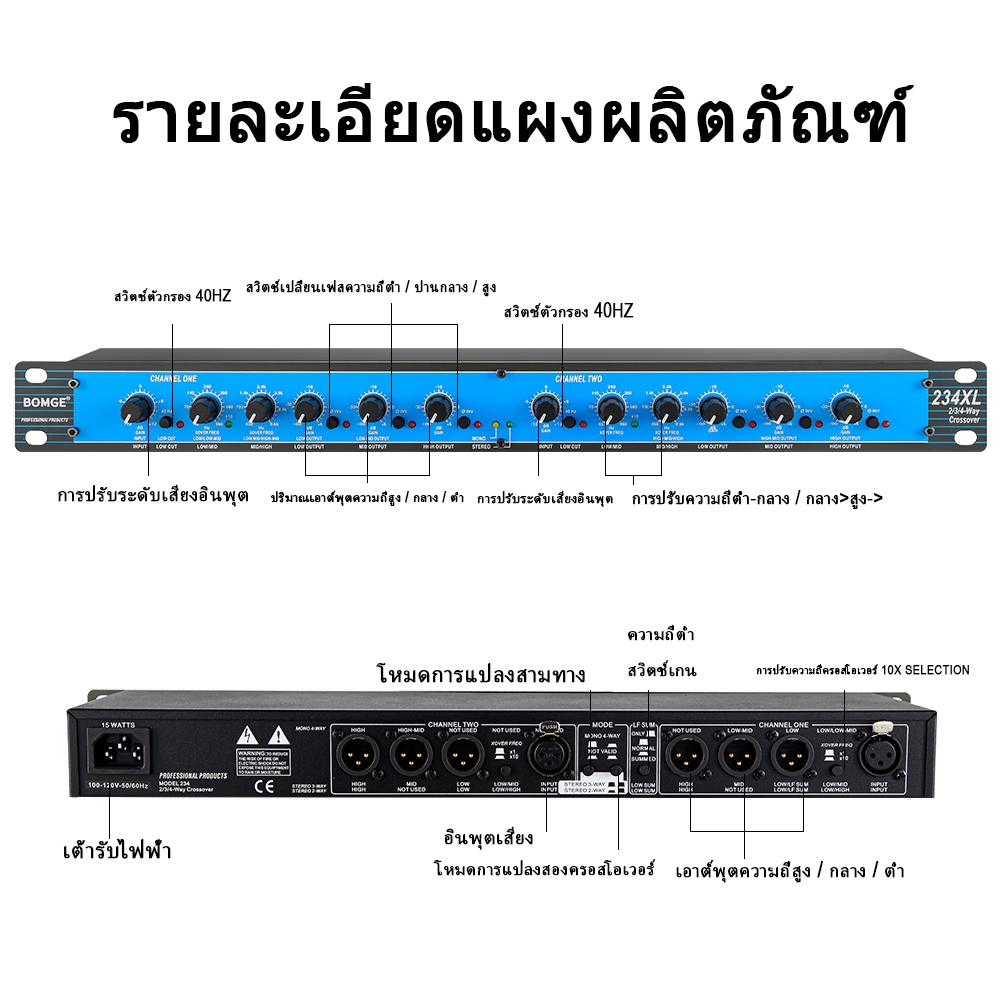 BOMGE 234XL ครอสโอเวอร์อิเล็กทรอนิกส์ระดับมืออาชีพ ระบบ 2-3 ทางโมโน 4 ทางสเตอริโอ ประมวลสัญญาณเสียงทรงพลัง อเนกประสงค์