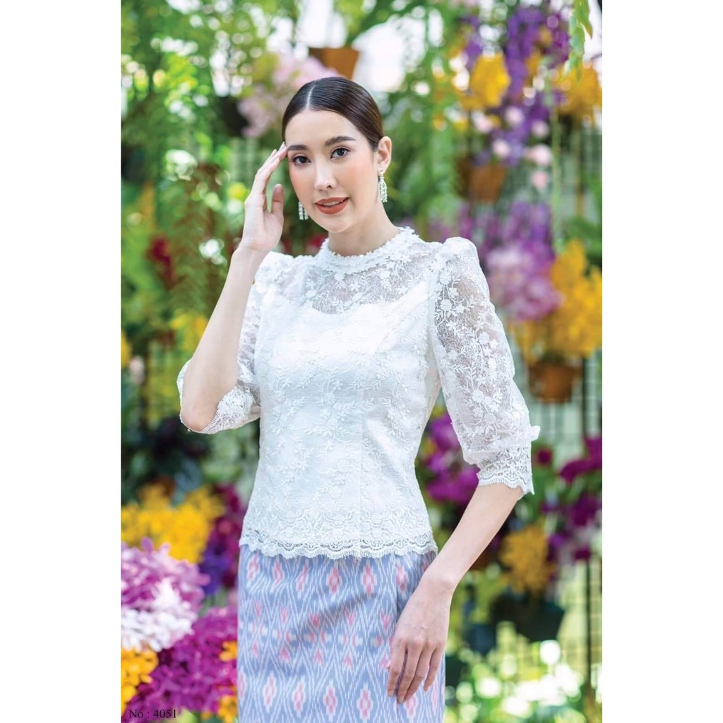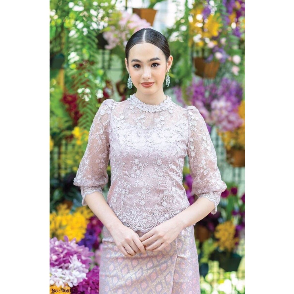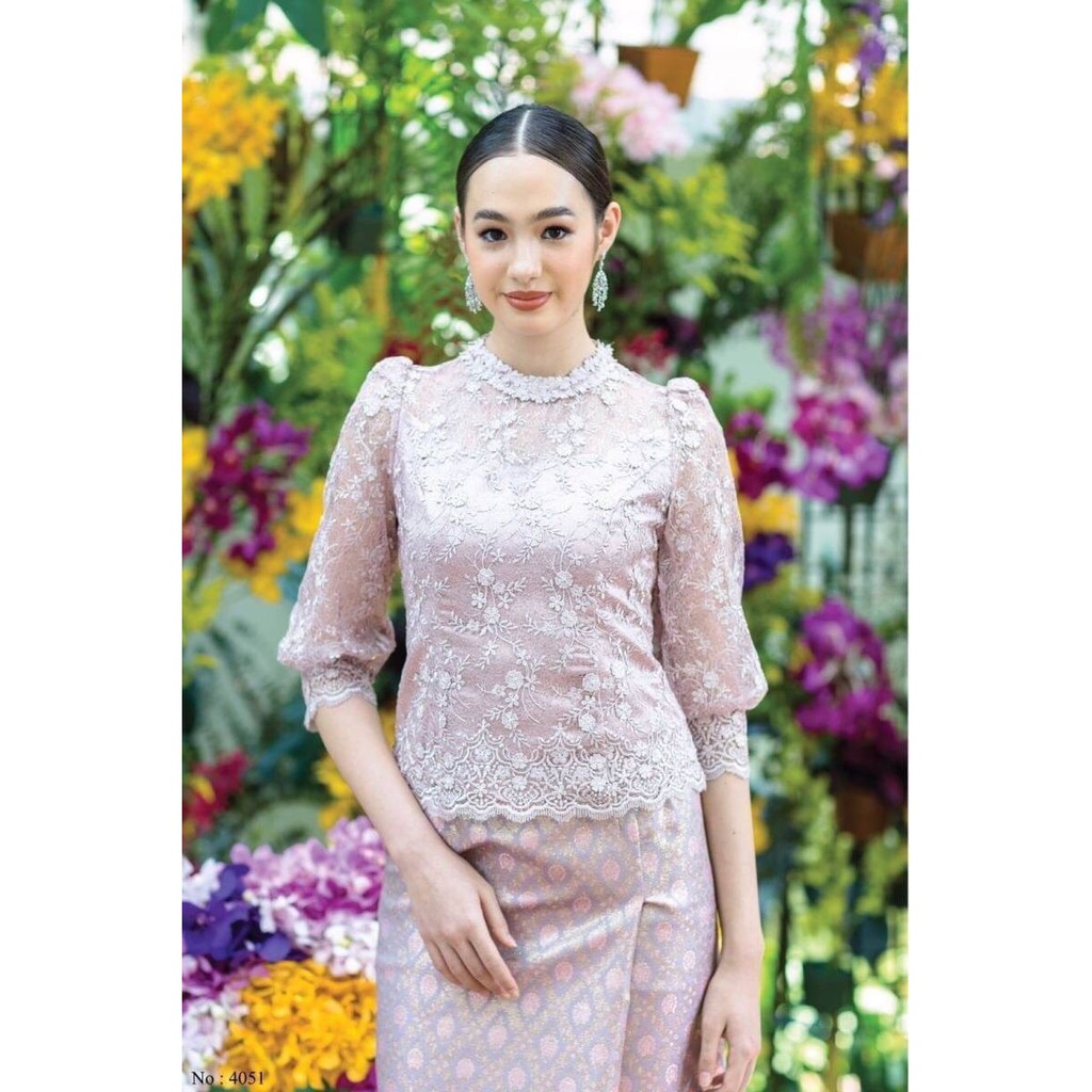 Carisa เสื้อลูกไม้ ชุดไทย แขนสามส่วน ผ้าลูกไม้เกรดพรีเมี่ยม มีซิปหลังและซิปข้าง มาพร้อมซับใน เสื้อลูกไม้ผู้หญิง [4091]
