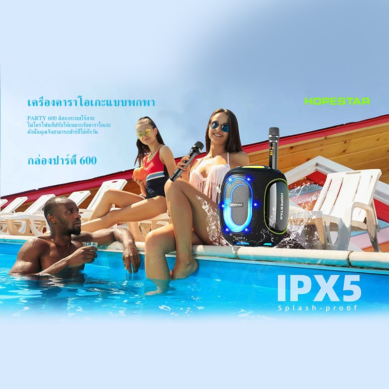 ลำโพงบลูทูธ ลำโพง คาราโอเกะ hopestar party box 600 ลำโพงกำลัง ขับ 300W พร้อม ไมโครฟอง2 ตัว ของแท้100%